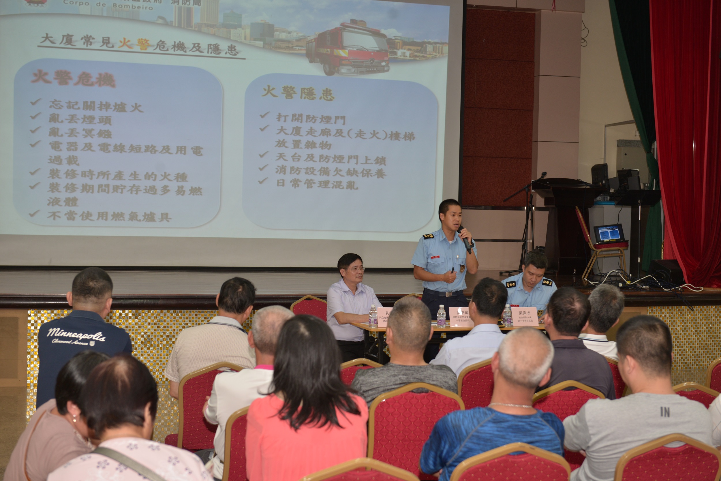 O Corpo de Bombeiros (CB) tem prestado grande atenção às condições de segurança contra incêndios dos edifícios de Macau. Com o objectivo de prevenir futuras ocorrências, continuamos a realizar os trabalhos de difusão de prevenção contra incêndios destinados aos membros dos condóminos do edifício, a fim de fortalecer as suas consciências de protecção contra o fogo, ensiná-los a usar correctamente e conservar os equipamentos de prevenção de incêndios dos edifícios, alcançar a meta de “vamos participar na protecção contra o fogo comunitária e construiremos conjuntamente a segurança contra incêndios” e assegurar a vida e o património dos residentes.
