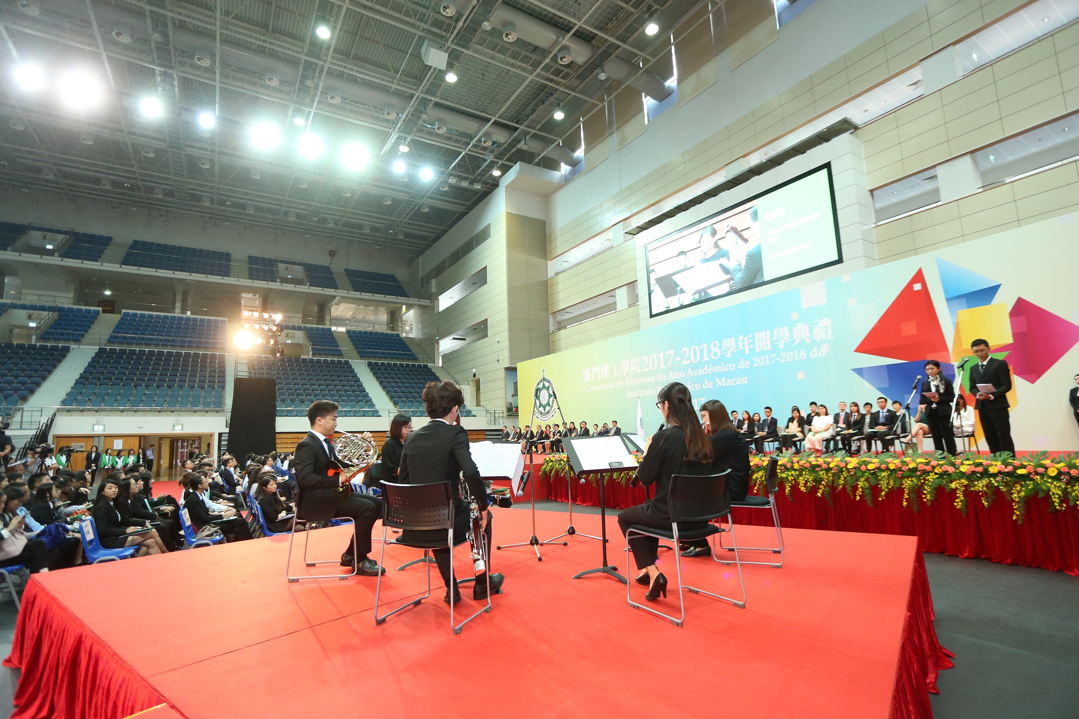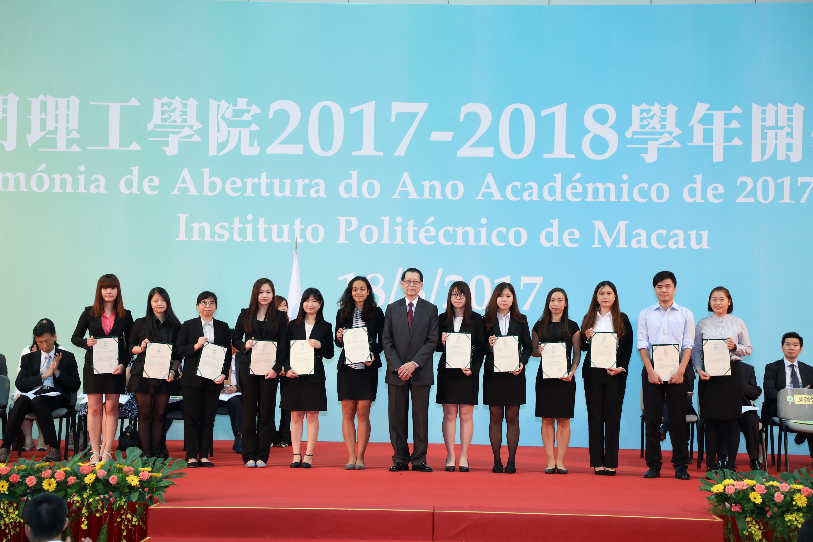A Cerimónia de Abertura do Ano Académico de 2017-2018 do Instituto Politécnico de Macau teve lugar no dia 18 de Agosto, no Pavilhão Polidesportivo do IPM. Neste ano, foram admitidos 900 novos alunos, incluindo mais de 80% dos alunos locais, e mais de 10% dos alunos do Interior da China e alunos provenientes de outros países. A mais de 500 alunos, considerados excelentes, foram atribuídas bolsas de estudo concedidas por serviços públicos, associações, empresas e individualidades. O IPM vai continuar a executar o seu princípio permanente de construir este Instituto como um espaço de ensino superior “pequeno, mas bonito; pequeno, mas maravilhoso”, formando mais talentos qualificados para a sociedade de Macau. Perante mais de mil convidados, professores e pais, os novos alunos prestaram juramento de se integrarem bem na grande família do IPM, o que resultou numa cena emocionante.