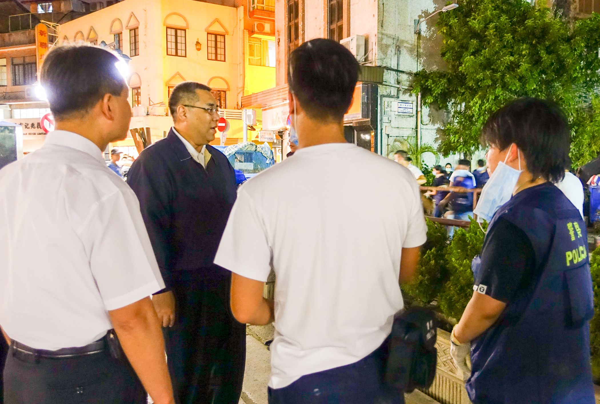 Chui Sai On, deslocou-se à zona da Rua 5 de Outubro, Rua da Ponta e Horta, Fai Chi Kei, Bairro San Kiu e outros Bairros das Ilhas onde fez a avaliação do trabalho de rescaldo e onde agradeceu a participação dos agentes das Forças de Segurança, dos voluntários e dos residentes.