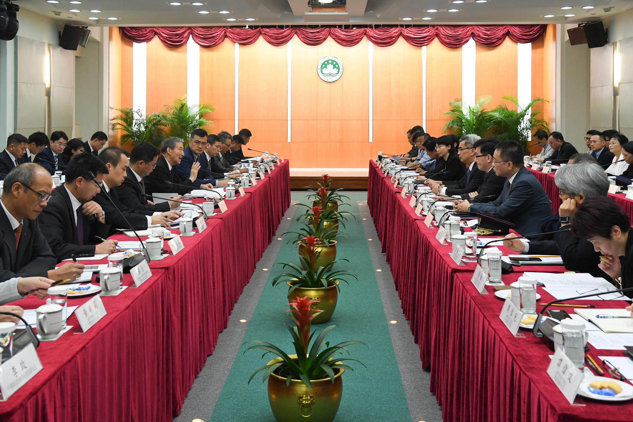 O Chefe do Executivo, Chui Sai On, teve, esta manhã, um encontro, na Sede do Governo, com a delegação de especialistas, liderada pelo subdirector da Comissão Nacional para a Redução de Desastres e chefe do grupo de especialistas de gestão de resposta à emergência do Conselho de Estado, Shan Chunchang, e composta pelos 22 membros, incluindo o coordenador adjunto do Centro de redução de desastres do Ministério de Assuntos Cívicos, Zhang Xuequan, subdirector do Departamento de Ligação do Gabinete para os Assuntos de Hong Kong e Macau do Conselho do Estado, Li Kun, o engenheiro sénior do centro de divulgação de informações de emergência nacional, Pei Shunqiang, o investigador da Administração Meteorológica do Estado, e outros peritos dos serviços competentes ao nível municipal e provincial, bem como do Governo Central, das áreas de planeamento geral de prevenção e salvamento pós-desastre, alertas, meteorológica, da hidráulica, de construção, de engenharia eléctrica, de telecomunicações, corpo de bombeiros, entre outros.