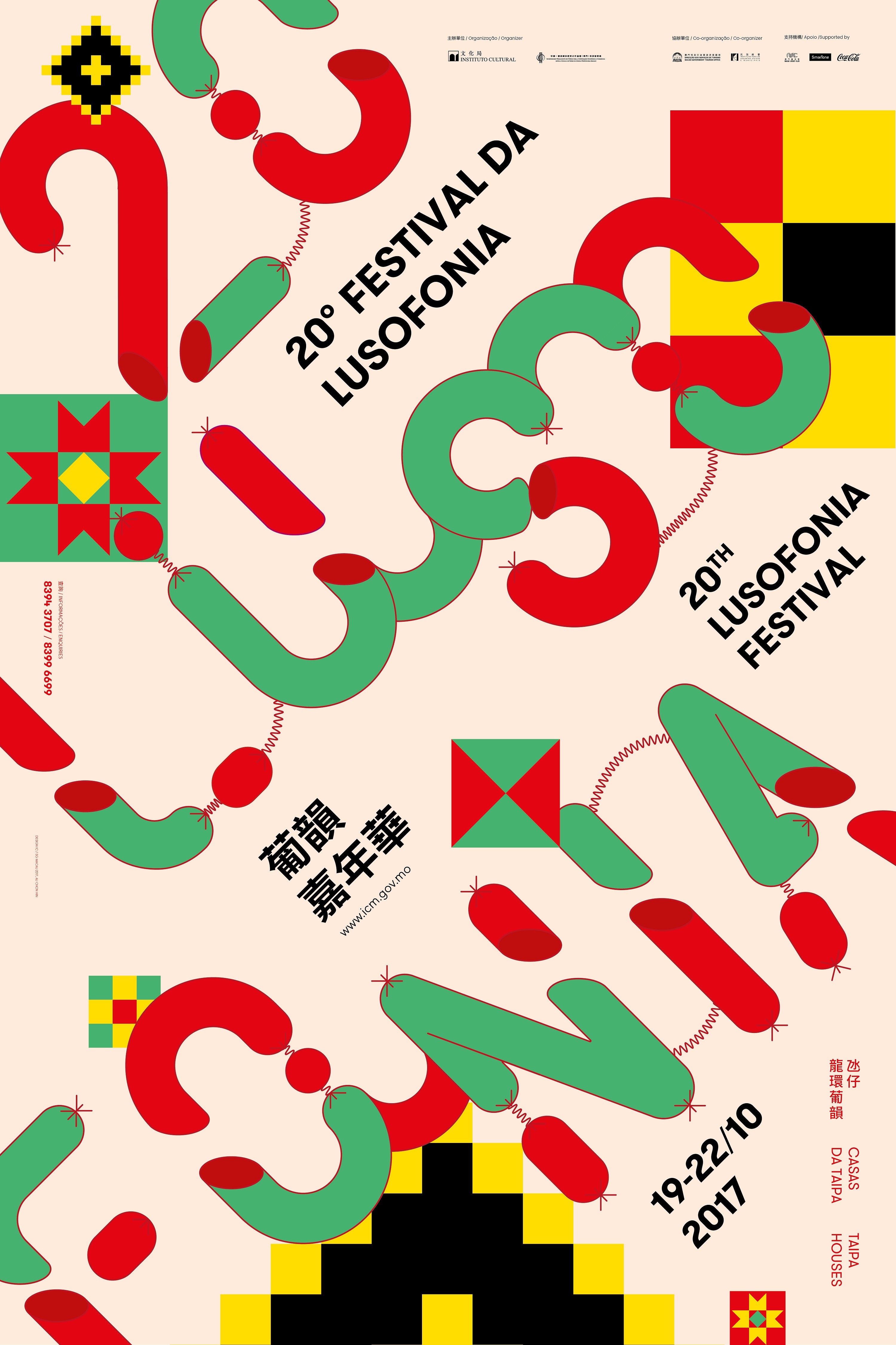 Organizado pelo Instituto Cultural e pelo Secretariado Permanente do Fórum para a Cooperação Económica e Comercial entre a China e os Países de Língua Portuguesa, em co-organização com a Direcção dos Serviços de Turismo e com o Instituto para os Assuntos Cívicos e Municipais, o 20.º Festival da Lusofonia, que dá a conhecer a cultura única lusófona de Macau, terá início esta Quinta-feira (19 de Outubro), decorrendo ao longo de quatro dias consecutivos (de 19 a 22 de Outubro) nas Casas da Taipa. Os residentes e turistas estão convidados a participarem nesta festa para experienciar a calorosa atmosfera lusófona.