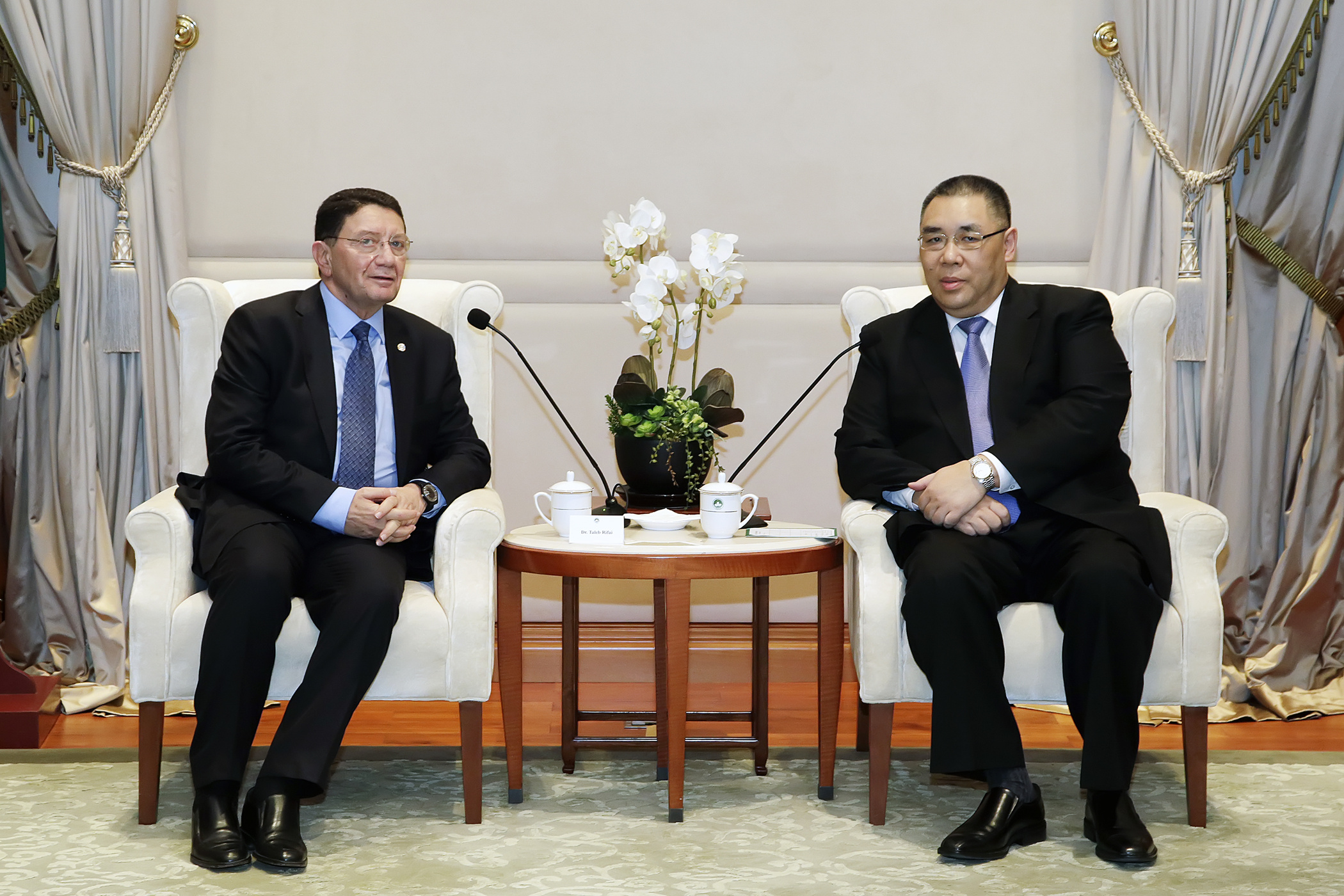 O Chefe do Executivo, Chui Sai On, teve, hoje (17 de Outubro), um encontro com o secretário-geral da Organização Mundial do Turismo da ONU (OMT), Taleb Rifai, onde trocaram impressões sobre o desenvolvimento sustentável da indústria do turismo.