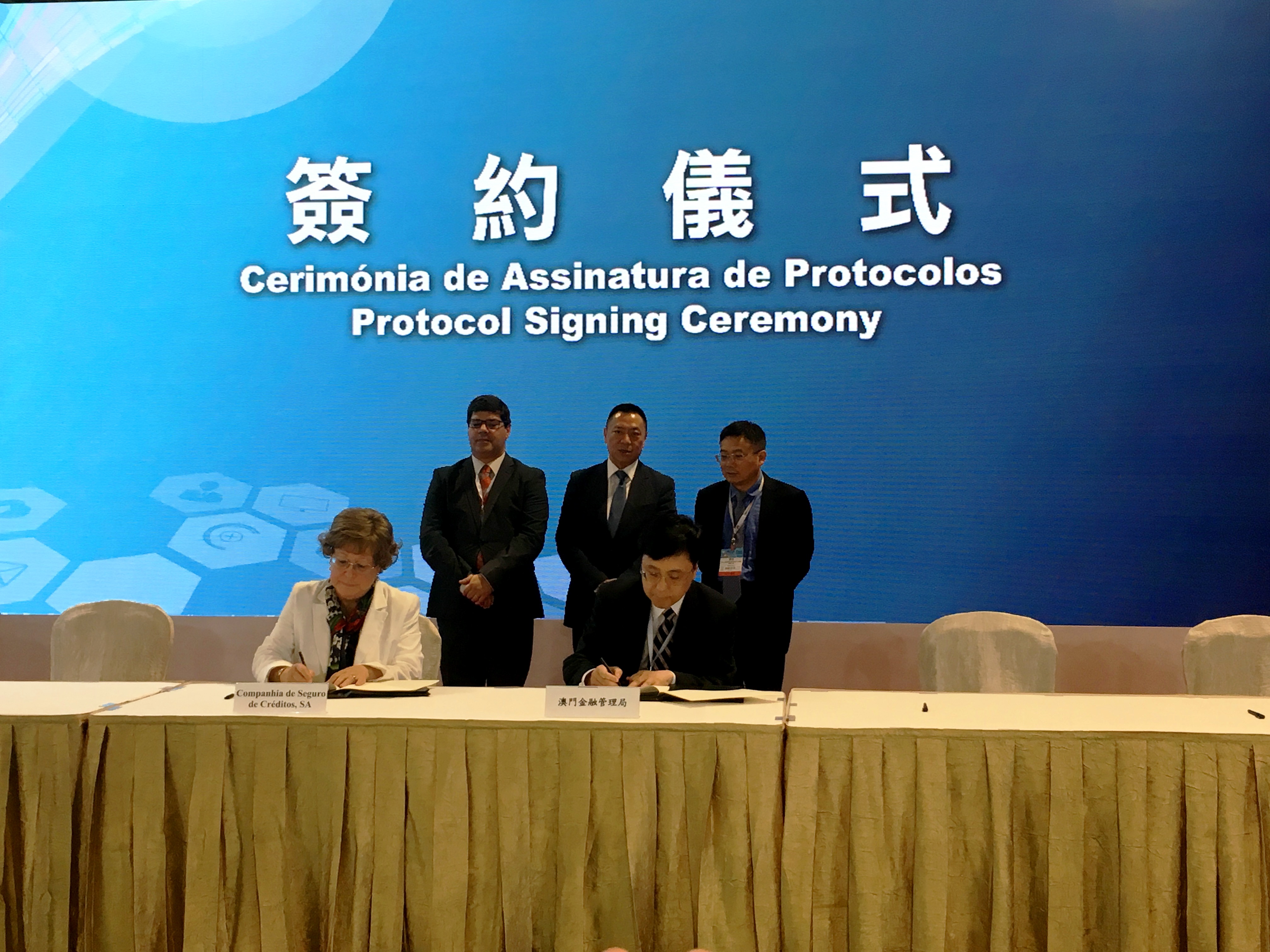 Para promover o desenvolvimento da diversificação da economia de Macau e o papel de Macau como a plataforma de serviços para a cooperação comercial entre a China e os Países de Língua Portuguesa, o Governo de RAEM irá, através do estabelecimento do sistema de seguro de créditos à exportação, diminuir o risco operacional do comércio das empresas locais. A AMCM acredita que através da cooperação com a COSEC, pode ajudar Macau a criar um sistema de seguro de créditos à exportação e construir uma "plataforma" .