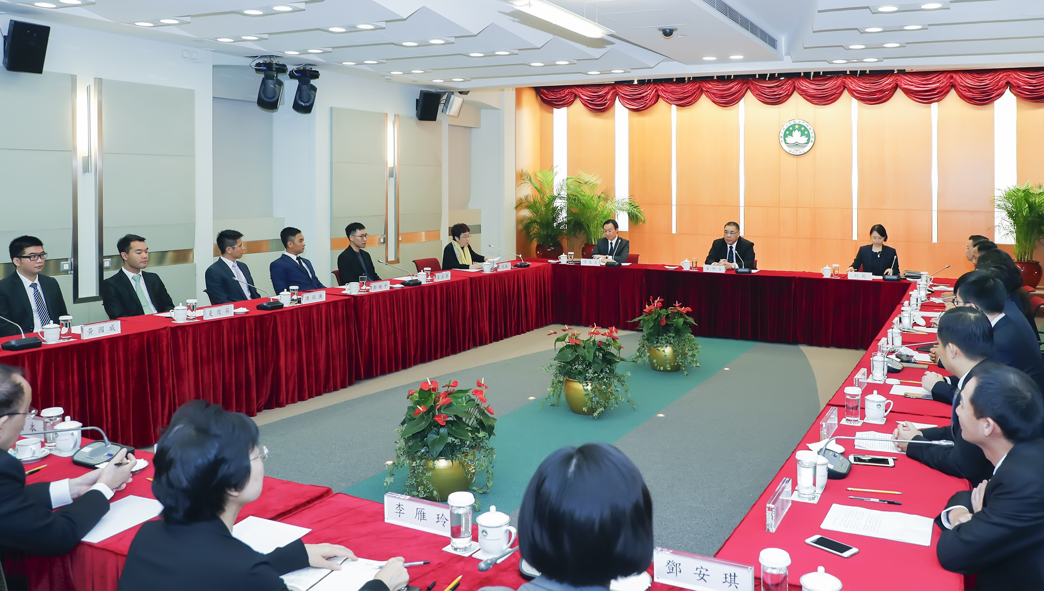 Estiveram ainda presentes no encontro o coordenador do Gabinete de Estudo das Políticas (GEP), Lao Pun Lap, os assessores do Gabinete do Chefe do Executivo, Wu Kan, Lei Ngan Leng, Tang On Kei, Ng Pek San, o assessor do GEP, Mi Jian, o coordenador-adjunto do GEP, Ung Hoi Ian, o assessor do Gabinete do Secretário para os Assuntos Sociais e Cultura, Wai Cheng Iong, as subdirectoras, substitutas, da Direcção dos Serviços de Educação e Juventude, Wong I Lin e Leong Vai Kei.