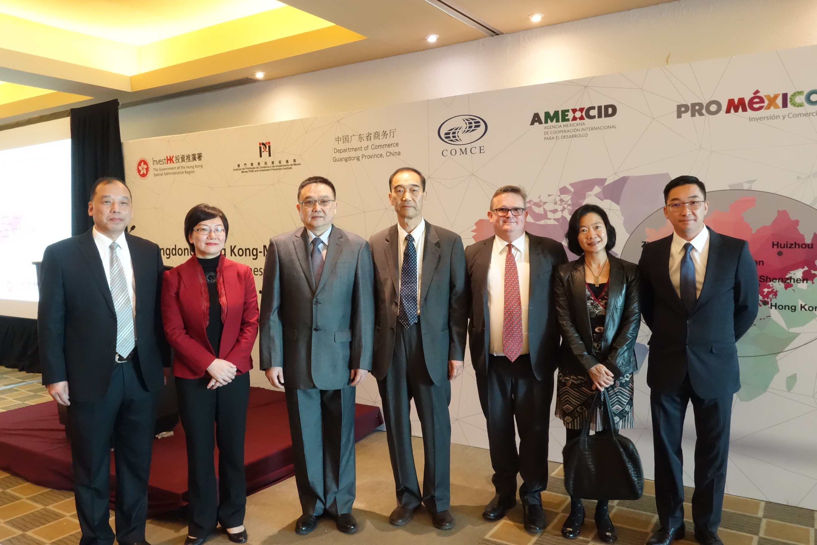 A fim de enfatizar a cooperação económica e comercial entre Guangdong, Hong Kong e Macau, bem como promover as oportunidades de negócio no âmbito da Região da Grande Baía Guangdong-Hong Kong-Macau, uma delegação composta por elementos do Instituto de Promoção do Comércio e do Investimento de Macau (IPIM), dos Serviços do Comércio da Província de Guangdong e do Invest Hong Kong (Invest HK) deslocou-se, entre os dias 27 de Novembro e 1 de Dezembro, à Cidade do México, no México (27 de Novembro), a Toronto, no Canadá (29 de Novembro), e a Seattle, nos Estados Unidos (1 de Dezembro), para a realização de sessões de promoção do ambiente de negócios e de investimento na Região da Grande Baía Guangdong-Hong Kong-Macau. Nestas sessões, representantes, respectivamente, dos governos de Guangdong, Hong Kong e Macau encorajaram empresas estrangeiras a aproveitarem as vantagens e investirem nos três territórios no âmbito da Região da Grande Baía.