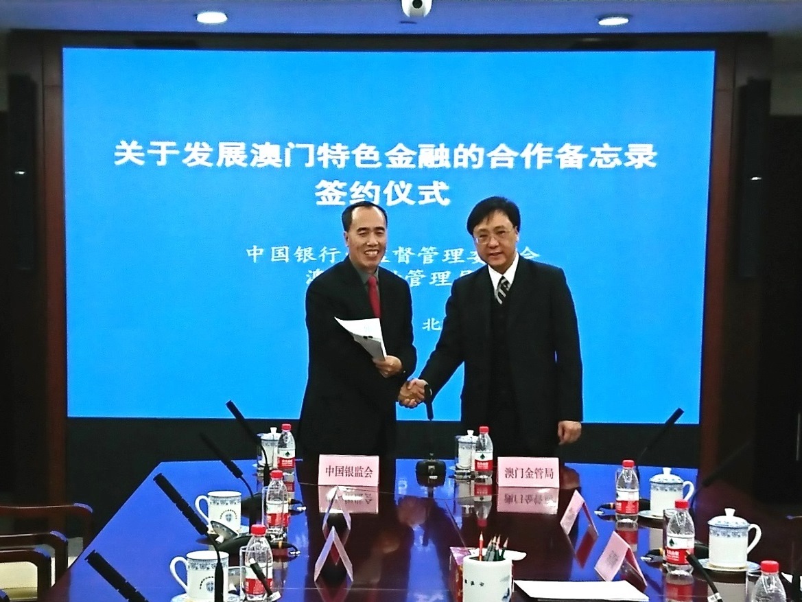 A Autoridade Monetária de Macau (AMCM) e a China Banking Regulatory Commission (CBRC) celebraram, na tarde do dia 5 de Dezembro, o “Memorando de Cooperação sobre o Desenvolvimento do Sector Financeiro de Macau com características próprias” em Pequim, com vista a reforçar o intercâmbio e a cooperação na área financeira entre as duas partes, apoiando o desenvolvimento do sector financeiro de Macau com características próprias.