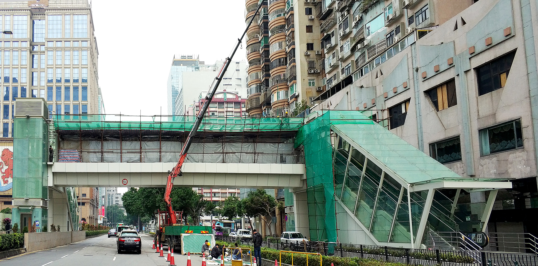 A obra de reparação da cobertura de vidro e das grades da passagem superior para peões junto à Avenida Doutor Mário Soares, a qual sofreu vários danos causados pelo tufão “Hato”, encontra-se concluída depois de a DSSOPT ter acompanhado os trabalhos relativos à reparação.