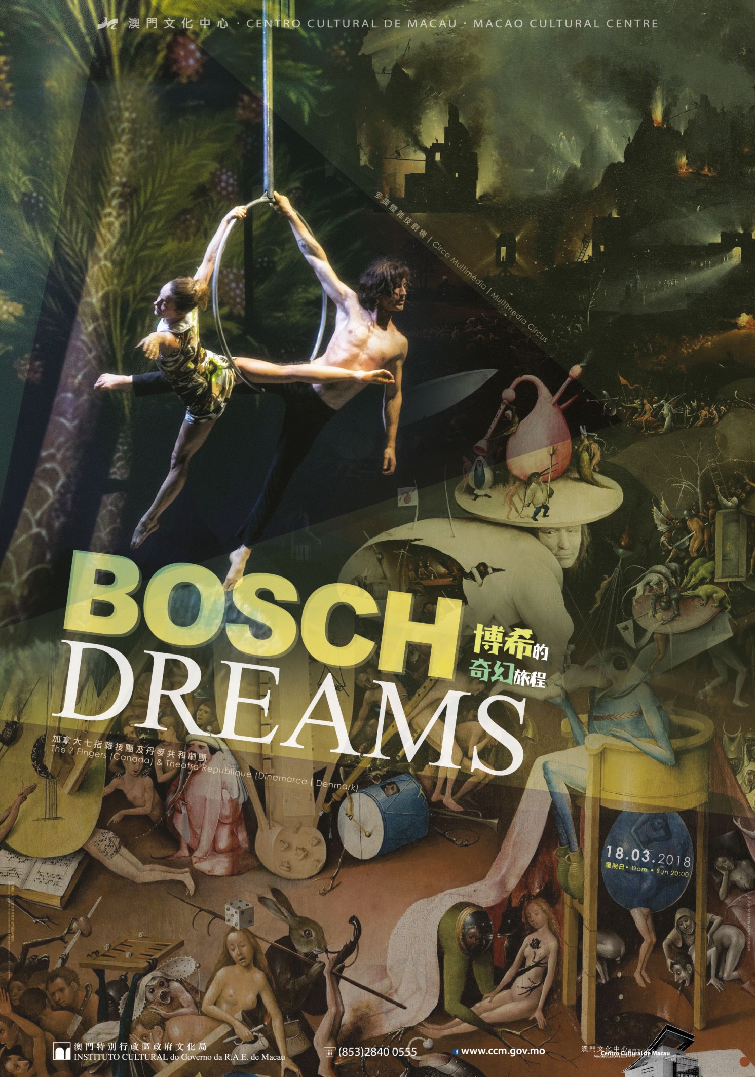 O Centro Cultural de Macau, sob a égide do Instituto Cultural, apresenta o circo multimédia Sonhos de Bosch e o concerto de músicas do mundo Anoushka Shankar – “Land of Gold”. Os dois espectáculos sobem ao palco do Grande Auditório a 18 e 20 de Março de 2018, respectivamente.