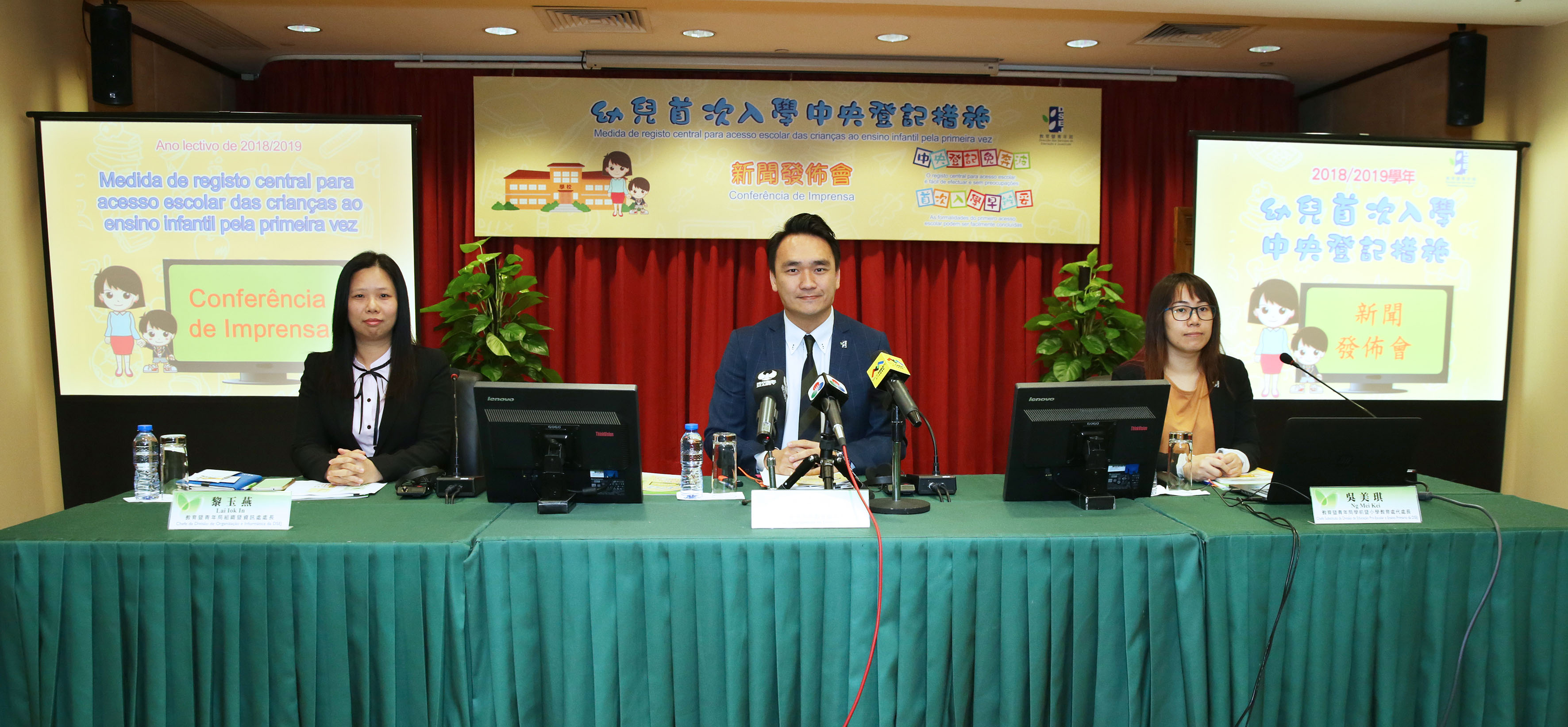 A Direcção dos Serviços de Educação e Juventude (DSEJ) deu, no dia 29 de Dezembro, uma conferência de imprensa durante a qual, o chefe do Departamento de Ensino, Kong Chi Meng, a chefe substituta da Divisão de Educação Pré-Escolar e Ensino Primário, Ng Mei Kei e a chefe da Divisão de Organização e Informática, Lai Iok In, apresentaram o conteúdo dos pontos relevantes do aperfeiçoamento da “Medida de registo central para acesso escolar das crianças ao ensino infantil pela primeira vez” (adiante designado por “medida de registo central”), incluindo o calendário de realização da medida de registo central, demonstrando também a operacionalidade do respectivo sistema.