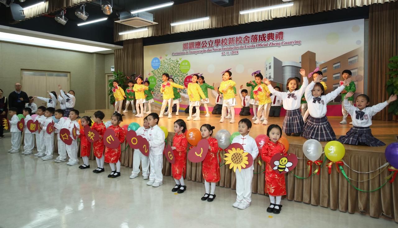 A Directora Escolar, Wu Kit, referiu no seu discurso que a Escola Oficial Zheng Guanying foi a primeira escola oficial a funcionar sob o modelo de concepção “one through train”, caracterizado pelo ambiente confortável do edifício escolar recém-inaugurado, com uma disposição do espaço diversificada e flexível e com equipamentos aperfeiçoados, sendo que todo o espaço concretiza o conceito educativo de carinho, diversificação, abertura e criatividade, reflectindo as ideias das acções governativas do Governo da RAEM relativas ao aperfeiçoamento do sistema da escola oficial. Ao longo dos tempos, as escolas oficiais têm-se empenhado na importante missão de formação de quadros qualificados bilingues em chinês e português e, para incentivar ainda mais o desenvolvimento do ensino da língua portuguesa e formar mais quadros qualificados com boas capacidades bilingues em chinês e português, a Escola Oficial Zheng Guanying lançou, no ano lectivo de 2017/2018, o ensino bilingue no 1.º ano do ensino primário e do ensino secundário geral. No futuro, a escola continuará a melhorar a sua organização e qualidade educativas, de modo a responder às necessidades, sentidas pelo público, de uma educação de excelência.
