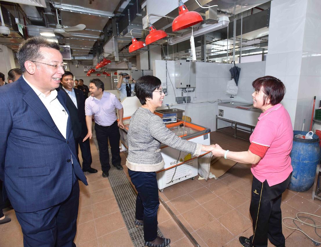 A Secretária para a Administração e Justiça, Dra. Chan Hoi Fan, visitou hoje (5 de Março) o mercado do Complexo Municipal do Mercado do Patane para se inteirar do andamento da mudança das bancas para as novas instalações e trocar impressões com os vendilhões. Após a sua entrada em funcionamento, o novo mercado visa optimizar as instalações comunitárias deste bairro e promover a qualidade de vida dos residentes.