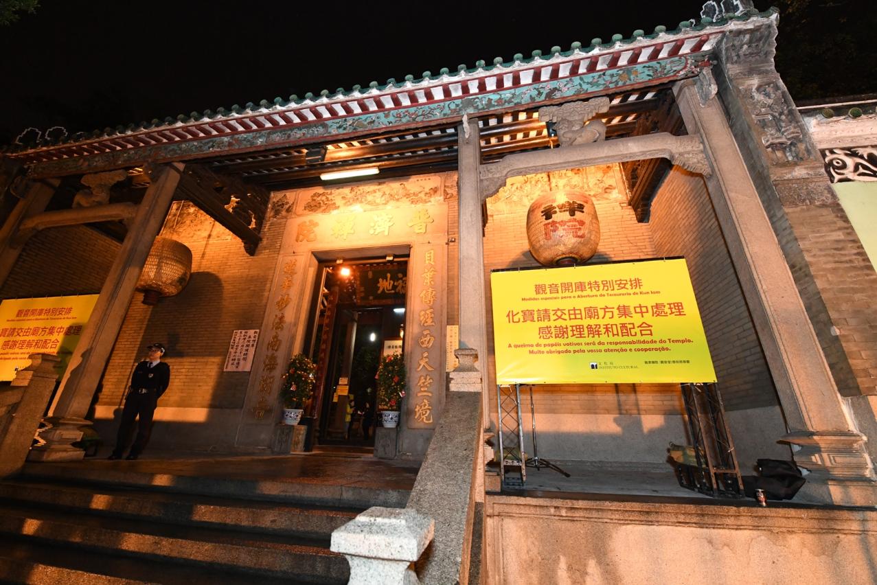 A fim de reforçar a gestão da segurança contra incêndios no dia da Abertura da Tesouraria de Kun Iam, este ano o Instituto Cultural (IC) volta a orientar a coordenação entre os templos e os departamentos competentes e a implementar a proibição de queima de papéis votivos durante o período de Abertura da Tesouraria de Kun Iam. Desde de 2016 que esta medida, contando com a compreensão e cooperação do público, tem vindo a elevar eficazmente a segurança contra incêndios nos templos durante o período de Abertura da Tesouraria de Kun Iam e, bem assim, a reduzir o impacto nas zonas envolventes, alcançado bons resultados.