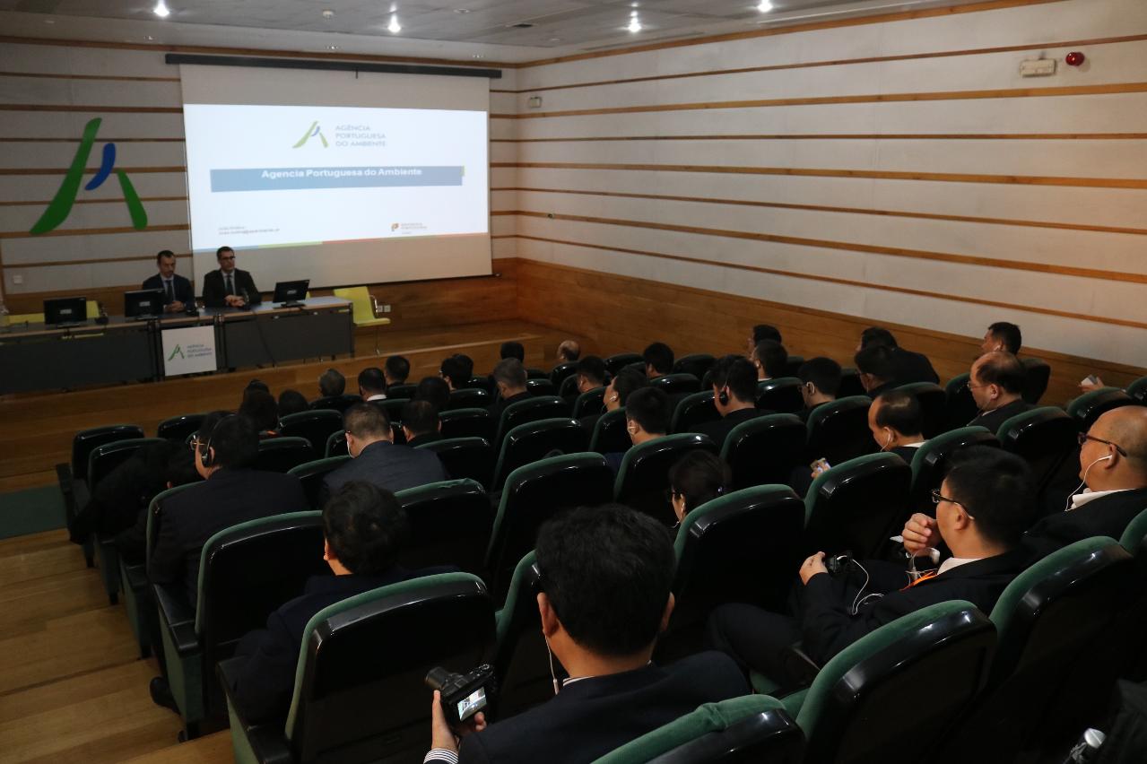 O programa da visita da delegação a Portugal integrou contactos com a Associação das Empresas Portuguesas para o Sector do Ambiente (AEPSA) e a Agência Portuguesa do Ambiente. O presidente da Agência Portuguesa do Ambiente, Nuno Lacasta, enfatizou a importância da economia circular e a valorização da cooperação sino-lusófona. Simultaneamente, o engenheiro João Bolina destacou a necessidade de haver um equilíbrio entre o desenvolvimento económico e a conservação do meio ambiente para se obter um desenvolvimento sustentável. Durante a visita, a delegação percebeu que, actualmente, em Portugal o sector de protecção ambiental dá elevada importância ao tratamento de resíduos perigosos através de tecnologia avançada, e que Portugal segue os padrões e orientações da União Europeia aquando da elaboração de leis, monitorizando rigorosamente e limitando a utilização de COV, de forma a diminuir a emissão de substâncias perigosas e diminuir a poluição atmosférica. As medidas de controlo incluem: obrigar as unidades industriais que contenham COV a preencher um formulário, reportando a sua situação de utilização de solventes, o qual é depois carregado para a página oficial da Agência Portuguesa do Ambiente; obrigar as estações de combustíveis a instalar por si próprias os equipamentos para reciclarem os COV; obrigar a embalagem e rotulagem das tintas de edifícios ou veículos que contenham COV a identificarem claramente os seus componentes; obrigar as empresas que importam ou produzem, e vendem directa ou indirectamente produtos que contenham COV a fazer a devida notificação, entre outros.