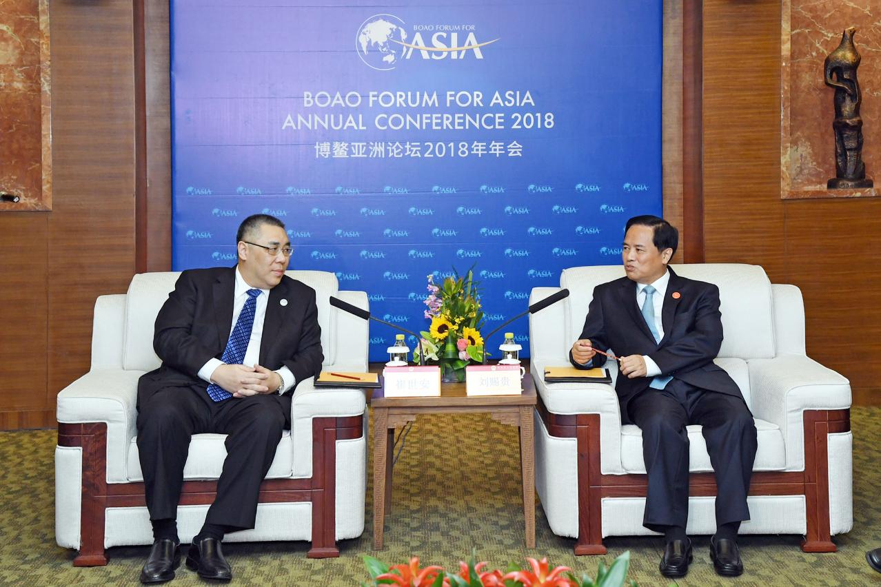 O encontro decorreu, esta tarde, no centro internacional de reuniões do Fórum Boao para a Ásia, contando com a presença do comissário do Ministério dos Negócios Estrangeiros da República Popular da China em Macau, Ye Dabo.