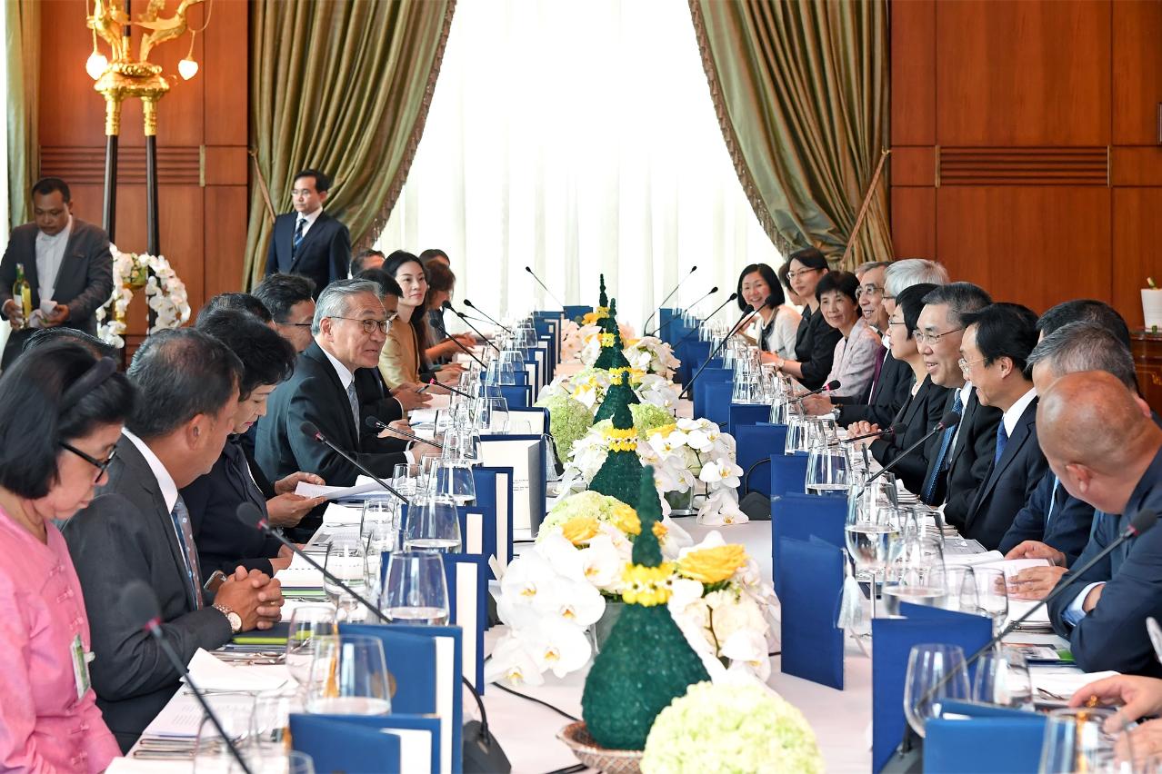 Durante o almoço de trabalho, Chui Sai On revelou que a amizade entre a China e a Tailândia vem de longa data, e lembrou as palavras do presidente, Xi Jinping, que disse que «a China e a Tailândia são tão próximas como os membros de uma família, e os povos dos dois países desfrutam de relações fraternas». Chui Sai On acrescentou que a construção da iniciativa «Uma Faixa, Uma Rota» impulsionada, de forma activa, pela China, obteve o forte apoio e participação da Tailândia. Sublinhou o empenho da RAEM na construção do centro mundial de turismo e lazer e no desempenho do seu papel de plataforma de serviços para a cooperação comercial entre a China e os Países de Língua Portuguesa, bem como a participação, de forma dinâmica, na construção da iniciativa «Uma Faixa, Uma Rota» e da Grande Baía Guangdong-Hong Kong-Macau, e que os países do sudeste asiático, incluindo a Tailândia, são os principais parceiros de cooperação da RAEM.
