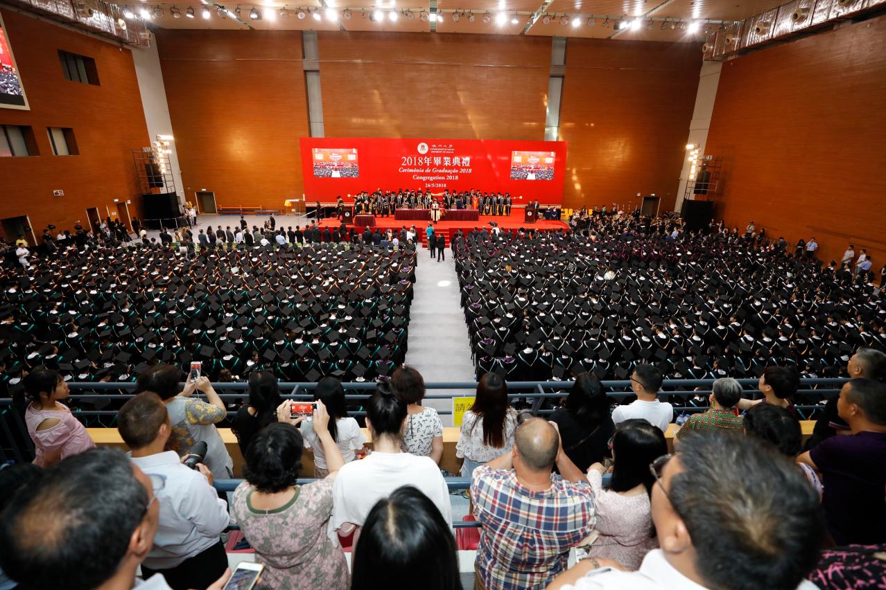 Chui officiated at the ceremony in the company of UM University Council Chair Lam Kam Seng, UM Rector Yonghua Song, and Vice Rectors Lionel Ni, Rui Martins, and Kou Mei. Nearly 4,000 people attended the ceremony, including members of the University Assembly, University Council, and Senate; government officials; prominent community members; parents of the graduates; and UM faculty and staff.