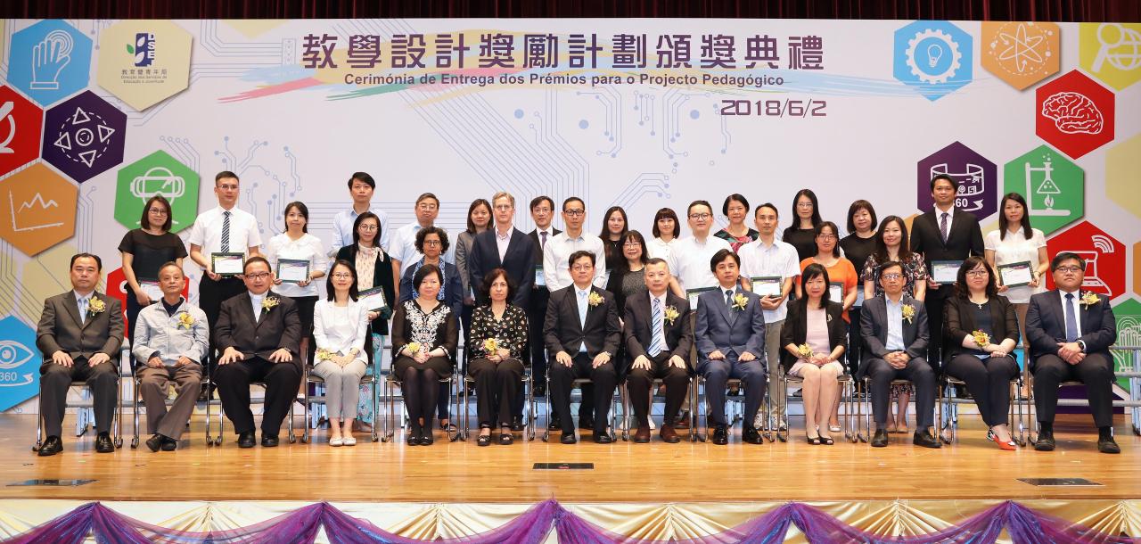 De modo a permitir ao pessoal docente e às escolas partilharem, em conjunto, o sucesso e a satisfação pelos prémios obtidos, a Direcção dos Serviços de Educação e Juventude (DSEJ) realizou, no dia 2 de Junho, na Escola Keang Peng (Secção Primária), a Cerimónia de Entrega dos Prémios para o Projecto Pedagógico do Ano Lectivo de 2016/2017 e organizou, ainda, uma exposição dos projectos premiados. Por seu lado, a Cerimónia de Entrega dos Prémios decorreu em atmosfera muito animada e contou com a presença dos seguintes convidados: o director da DSEJ, Lou Pak Sang, a subdirectora da DSEJ, Leong Vai Kei, o subdirector substituto, Wong Kin Mou e os chefes das subunidades, bem como os representantes e os membros do júri oriundos da Universidade de Macau, do Instituto Politécnico de Macau, da Universidade de São José, da Associação de Educação de Macau, da Associação das Escolas Católicas de Macau, da Associação de Estudos de Matemática de Macau e da Associação de Academia da Informática de Macau, os vogais do Conselho de Educação para o Ensino Não Superior e do Conselho Profissional do Pessoal Docente, os membros do Grupo Coordenador e Consultivo dos Trabalhos dos Cursos de Formação do Pessoal Docente e ainda os directores das escolas e o pessoal docente premiado, num total de cerca de 600 pessoas.