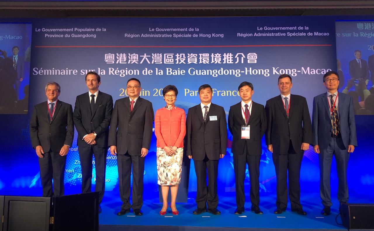 Em face do iminente lançamento do plano de desenvolvimento da Grande Baía Guangdong-Hong Kong-Macau, com vista a reflectir o intercâmbio e a cooperação económica e comercial no seio da região, promovendo junto de entidades no exterior as oportunidades económicas da Grande Baía Guangdong-Hong Kong-Macau, representantes do Governo Popular da Província de Guangdong, do Governo da Região Administrativa Especial de Hong Kong e do Governo da Região Administrativa Especial de Macau organizaram em conjunto um “Seminário sobre a Grande Baía Guangdong-Hong Kong-Macau” no dia 20 de Junho, em Paris, França. Participaram no referido evento mais de 400 representantes do governo e da comunidade empresarial daquele país, tendo no decorrer do qual, os dirigentes governamentais de Guangdong, Hong Kong e Macau incentivado as empresas francesas a investirem na Região da Grande Baía Guangdong-Hong Kong-Macau, tirando proveito das vantagens comerciais dos três territórios.