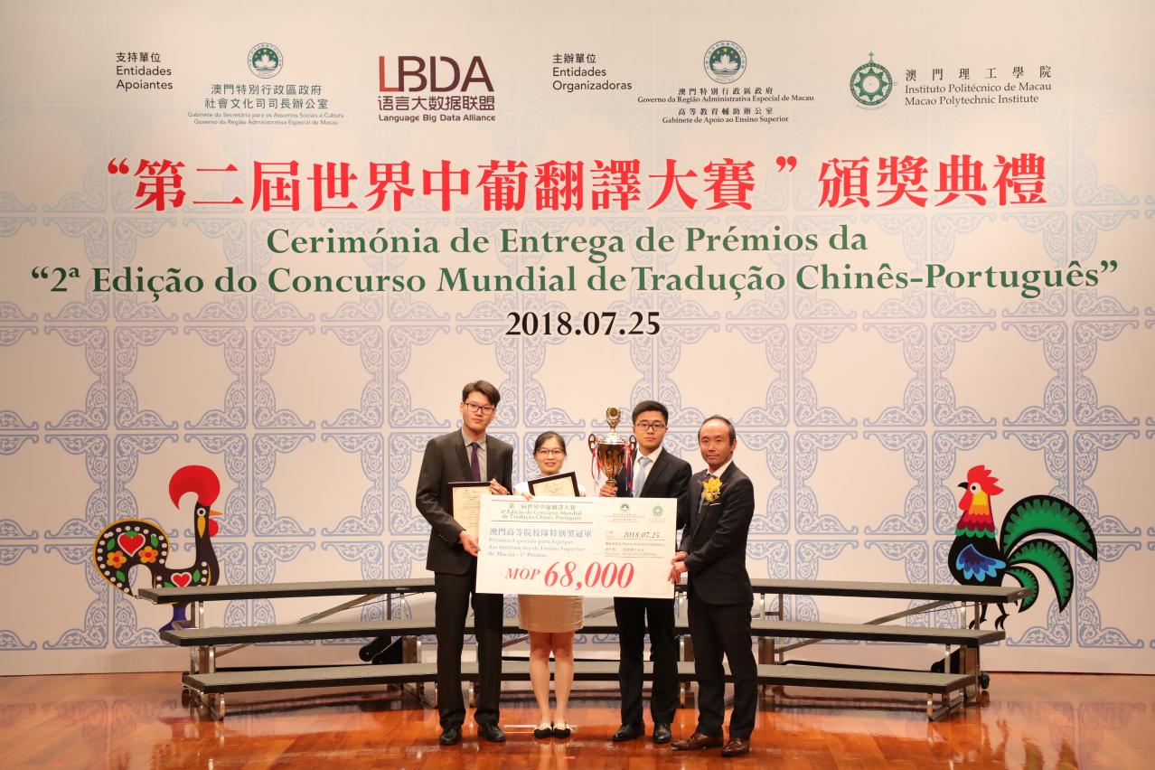 Para reforçar os intercâmbios académicos no campo de tradução chinês–português, formar talentos profissionais em tradução chinês- português e promover a aplicação dos resultados académicos e científicos mais recentes na área de tradução chinês-português em Macau, no Interior da China, e nos países lusófonos ao longo da área da iniciativa nacional da China “Uma Faixa, Uma Rota", a Cerimónia de Entrega de Prémios da 2.ª Edição do Concurso Mundial de Tradução Chinês–Português realizou-se com sucesso no IPM. O Concurso atraiu 117 equipas de 34 instituições de ensino superior internacionais. Foi a equipa da Universidade de Comunicação da China que ganhou o 1.º Prémio Geral, e a equipa do Instituto Politécnico de Macau, o 1.º lugar dos “Prémios Especiais para Equipas das Instituições de Ensino Superior de Macau”. O Prof. Dr. Huang Youyi, Vice-presidente Executivo da Associação de Tradutores da China, apontou que o Concurso Mundial de Tradução Chinês-Português é a única competição no campo de tradução chinês-português em todo o Mundo, elogiando que este Concurso tinha desempenhado um papel muito positivo para estimular e orientar os tradutores chinês-português a elevarem o seu nível de tradução, salientando ainda que, hoje em dia, tendo em conta os intercâmbios cada vez mais frequentes entre a China e os países da língua portuguesa, a tradução chinês-português torna-se cada vez mais importante do que em qualquer outra época da história, e isso traz um grande significado para o Concurso Mundial de Tradução.