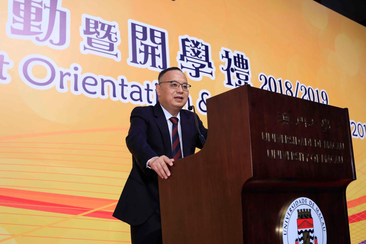The University of Macau (UM) today (20 August) held the convocation and an orientation seminar for the 2018/2019 academic year for over 2,000 new students. UM Rector Yonghua Song gave the new students their first lecture at UM. During the talk, he discussed how,against the background of the fourth industrial revolution, leading universities around the world should evolve and nurture outstanding professionals with a creative mindset to meet the challenges of today’s world. He also encouraged students to treasure their time in college and make the most of UM’s outstanding teaching environment and research resources, in order to increase their competitiveness in a global environment and inject a creative energy into China and Macao.