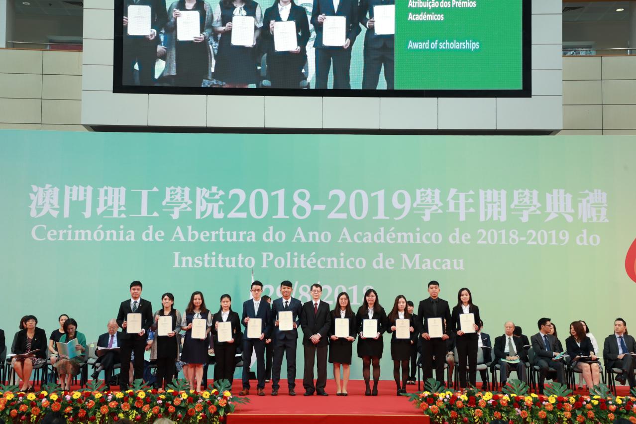 Para elogiar os alunos com excelentes desempenhos académicos e bom comportamento moral, na Cerimónia de Abertura do Ano Académico de 2018/2019, realizada no dia 29 de Agosto, o Instituto Politécnico de Macau atribuiu bolsas de estudo a mais de 500 alunos excelentes, de forma a reconhecer os seus esforços e resultados no ano passado e estimular o melhoramento contínuo no futuro; além disso, encorajou outros alunos para se dedicarem mais para obterem melhores resultados no estudo e boas qualidades morais, continuando o auto-aperfeiçoamento, de forma a contribuírem para a RAEM, a Grande Baía e a Pátria.