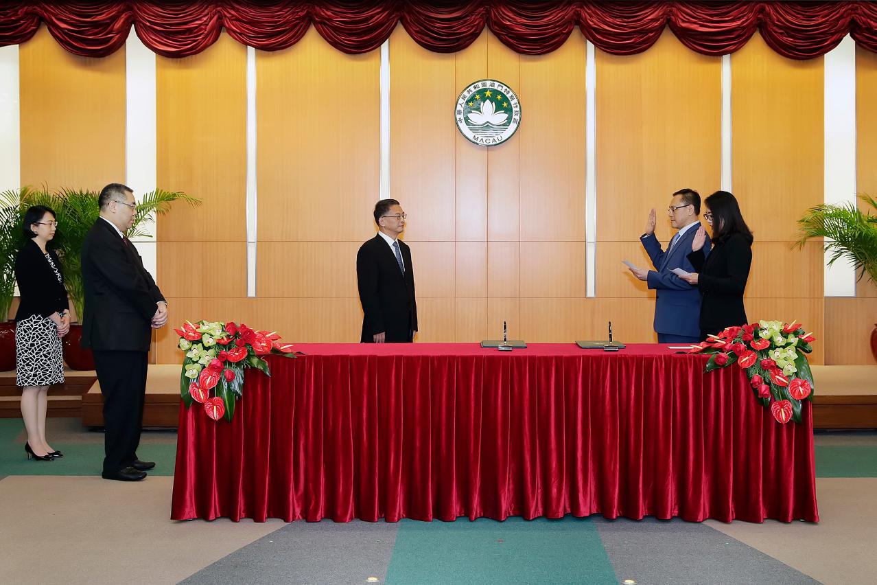 O Chefe do Executivo, Chui Sai On, testemunhou, hoje (6 de Setembro), o juramento e tomada de posse do director dos Serviços de Estudo de Políticas e Desenvolvimento Regional (DSEPDR), Mi Jian. A cerimónia contou ainda com a presença da chefe de Gabinete do Chefe do Executivo, O Lam.