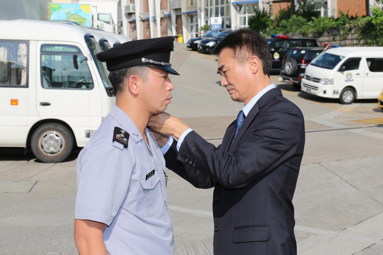 Na cerimónia, o Director Cheng Fong Meng incentivou os empossados que a promoção também significa a assunção de maior responsabilidade de trabalho, estimulando os mesmos a não se esquecerem dos princípios básicos no novo posto, continuando a aperfeiçoar-se e a prestarem esforço nos trabalhos com toda a dedicação e lealdade, sem recear aos desafios, em colaboração com todo o pessoal, para contribuir na elevação do nível correccional de Macau e assegurar a paz social. Além disso, a fim de aperfeiçoar o quadro de pessoal das diversas categorias do Corpo de Guardas Prisionais e proporcionar aos guardas as oportunidades de mobilidade ascendente, a DSC tem promovido activamente o processo dos concursos de acesso interno. Em 2016, foram promovidos 16 elementos à categoria de subchefes e em 2017, 10 elementos à categoria de chefe. Neste momento, encontra-se aberto o concurso de acesso interno, condicionado, para o preenchimento de 20 lugares vagos de subchefe existentes no quadro da carreira do CGP, facultando aos guardas um projecto favorável à sua carreira profissional, elevando o moral do CGP.