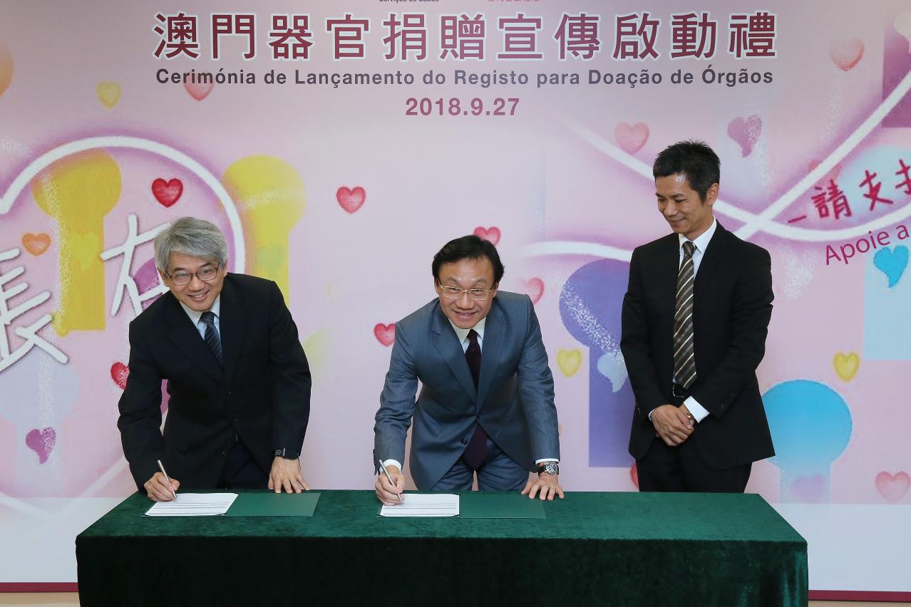Para promover e incentivar a sociedade a apoiar a doação de órgãos o Secretário para os Assuntos Sociais e Cultura, Doutor Alexis Tam, participou, quinta-feira, 27 de Setembro, na Cerimónia de Lançamento do Registo para Doação de Órgãos, tendo presidido a abertura da página electrónica “Doação de Órgãos” e efectuado o registo a par com o Director dos Serviços de Saúde, Dr. Lei Chin Ion, como doador de órgãos.