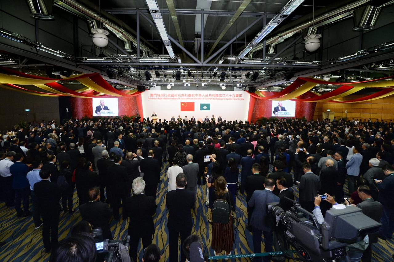 O Governo da RAEM realizou, esta manhã, no Centro de Convenções e Entretenimento da Torre de Macau, uma recepção solene, em comemoração do 69º aniversário da Implantação da República Popular da China, com a presença de cerca de 760 convidados.