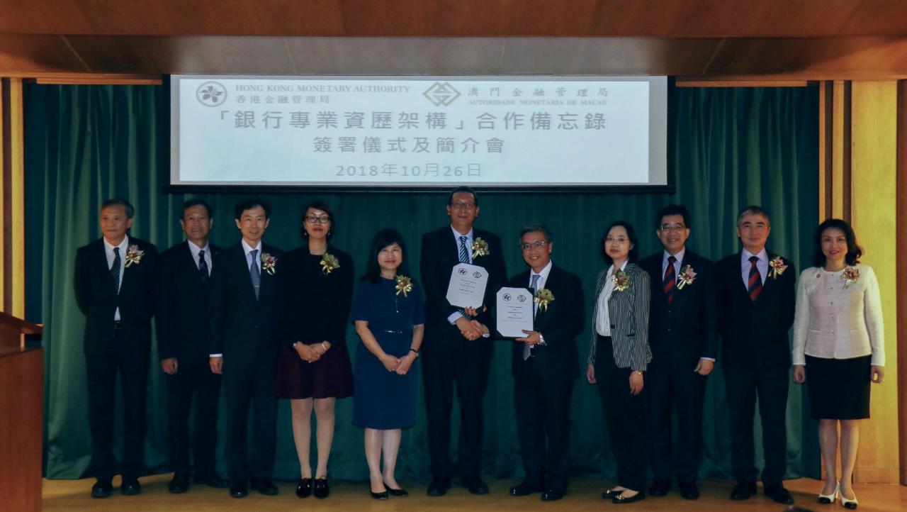 De acordo com o “Memorando de cooperação no quadro das qualificações profissionais bancárias”, a AMCM e a HKMA irão reconhecer de forma recíproca as formações de capacidades profissionais e as qualificações profissionais adquiridas nas duas jurisdições, sob o “Quadro de qualificações profissionais bancárias” e organizar em conjunto cursos de formação, através do Instituto de Formação Financeira de Macau e do “The Hong Kong Institute of Bankers”, no sentido de promover o intercâmbio entre os talentos das duas jurisdições, fortalecer a capacidade profissional dos trabalhadores do sector bancário, alargando o seu espaço de desenvolvimento profissional.