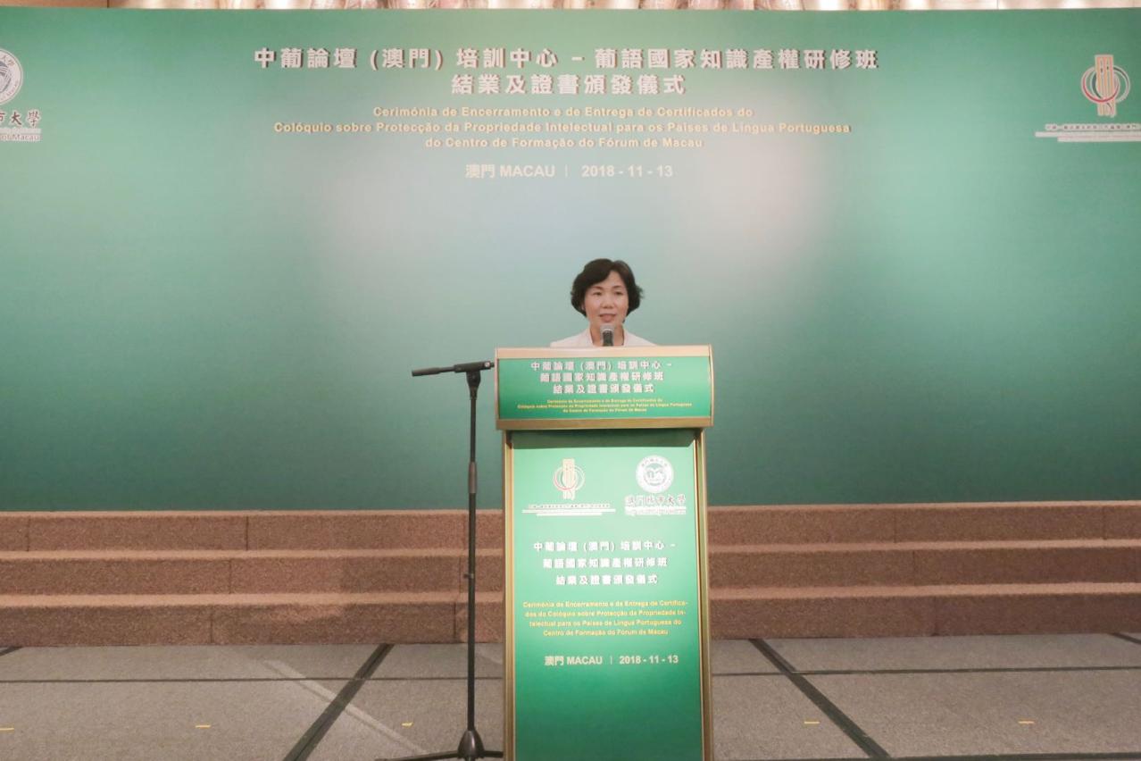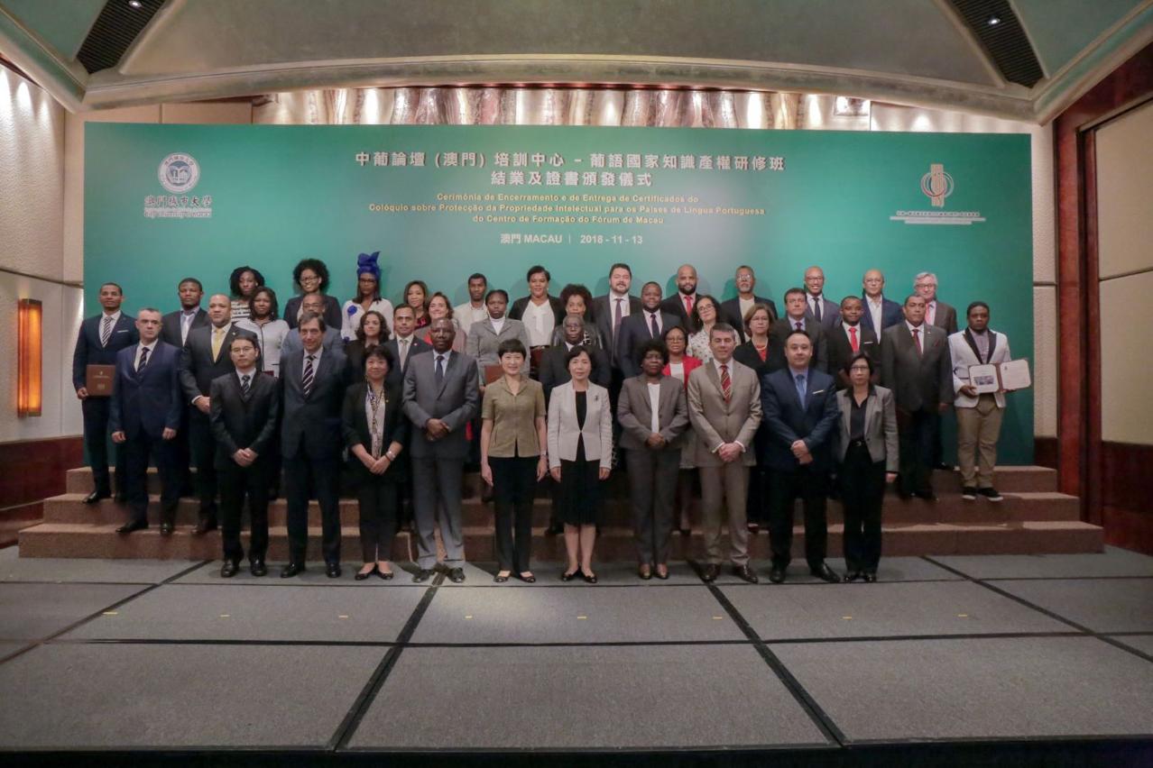 No dia 13 de Novembro, realizou-se no Salão de Banquete do Hotel MGM, a Cerimónia de Encerramento e de Entrega de Certificados do “Colóquio sobre a Protecção da Propriedade Intelectual para os Países de Língua Portuguesa”, organizado pelo Fórum de Macau, em colaboração com a Universidade da Cidade de Macau.