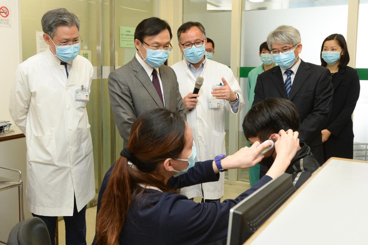 Secretário para os Assuntos Sociais e Cultura, Dr. Alexis Tam Chong visita os Serviços de Saúde em resposta à situação do pico de gripe