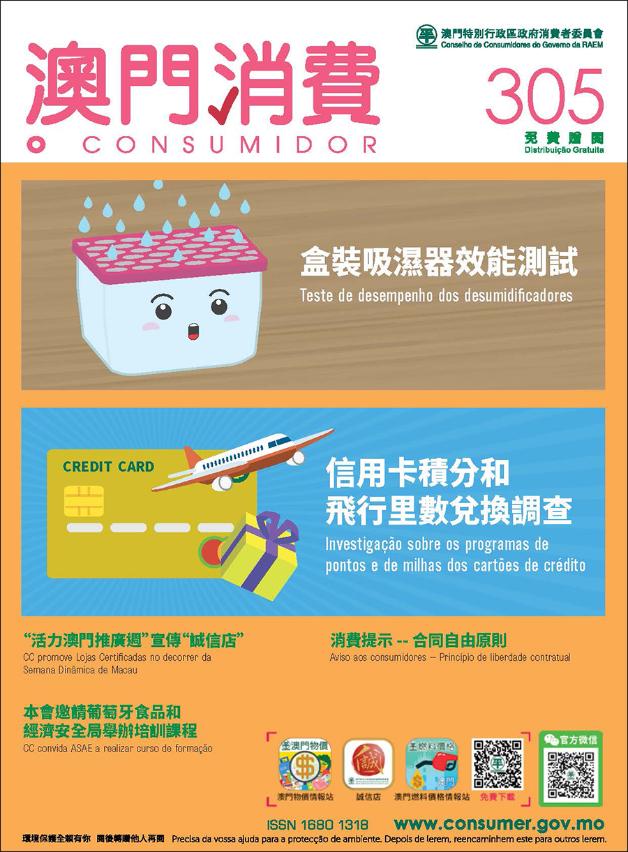 Hoje em dia, muitas entidades emissoras lançam cartões de créditos com programa de pontos ou de milhas aéreas. No entanto, qual é o cartão de crédito com que os consumidores podem obter a maior recompensa após o consumo? O Conselho de Consumidores (CC) levou a cabo uma investigação sobre 29 cartões de crédito emitidos pelas oito entidades emissoras de Macau, nomeadamente sobre as condições de requerimento, a taxa de processamento associada à transacção efectuada no exterior e os programas de pontos e milhas aéreas. O relatório da referida investigação já se encontra publicado na revista “O Consumidor” n.º 305.