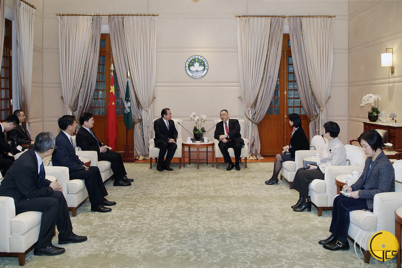 O Chefe do Executivo, Chui Sai On, reuniu-se, hoje (25 de Janeiro), na Sede do Governo, com o vice-ministro do Departamento da Frente Unida do Comité Central do Partido Comunista da China (PCC) e director do Gabinete para os Assuntos dos Chineses do Ultramar do Conselho de Estado, Xu Yousheng, e respectiva comitiva, tendo trocado opiniões sobre o papel da comunidade ultramarina em Macau de forma a contribuir para a iniciativa nacional «Uma Faixa, Uma Rota».