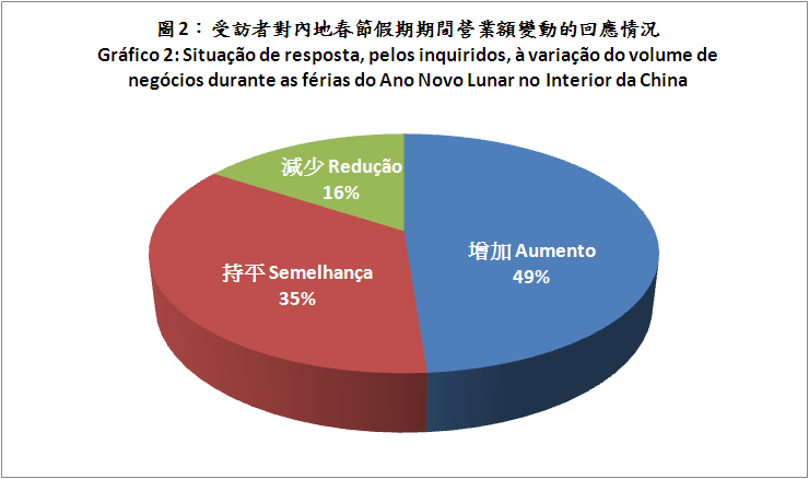 Situação de resposta, pelos inquiridos, à variação do volume de negócios durante as férias do Ano Novo Lunar no Interior da China