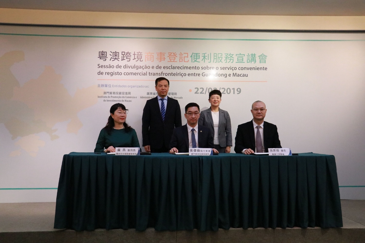 Em conformidade com a publicação das “Linhas Gerais do Planeamento para o Desenvolvimento da Grande Baía Guangdong-Hong Kong-Macau”, no que diz respeito à promoção do intercâmbio e de desenvolvimento das empresas de Guangdong e Macau, o Instituto de Promoção do Comércio e do Investimento de Macau (IPIM) introduz os “Serviços Convenientes para o Registo Comercial nas 9 cidades da Grande Baía Guangdong-Hong Kong-Macau”, para esse efeito foi organizado hoje (22 de Março), em conjunto com a Administração de Regulação do Mercado da Província de Guangdong, a “Sessão de Divulgação e de Esclarecimento sobre o Serviço Conveniente de Registo Comercial Transfronteiriço entre Guangdong e Macau” com vista a apresentar as tendências da reforma do serviço facilitador para o registo comercial, às empresas de Macau interessadas no investimento nas 9 cidades da Grande Baía, bem como os fluxogramas dos principais trâmites.