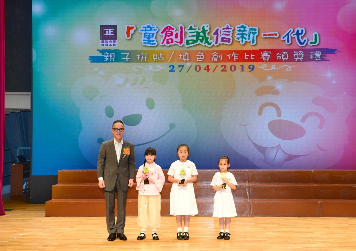 A cerimónia de entrega de prémios da actividade “Uma Nova Geração Criativa e Honesta” Concurso de Colagem para Pais e Filhos/Concurso de Pintura Criativa”, organizada pelo Comissariado contra a Corrupção (CCAC), foi realizada no Sábado passado (dia 27), pelas 15:00, no auditório da Escola Luso-Chinesa Técnico-Profissional, contando com a presença de mais de 180 participantes, incluindo representantes do sector da educação e das associações, encarregados de educação e os respectivos premiados. O Chefe do Gabinete do Comissariado contra a Corrupção, Sam Vai Keong, referiu no seu discurso que a participação nesta iniciativa foi muito activa, tendo sido recebidos um total de aproximadamente 1.600 trabalhos concorrentes para os dois grupos, encontrando-se entre eles vários trabalhos bastante criativos e inspiradores, acreditando-se que tanto os estudantes como os encarregados de educação adquiriram, no processo de criação dos trabalhos, uma compreensão mais profunda sobre integridade e honestidade. Apelou ainda a todos que preservem estes valores e os transmitam a familiares e amigos com o objectivo da construção, em conjunto, de uma sociedade íntegra.
