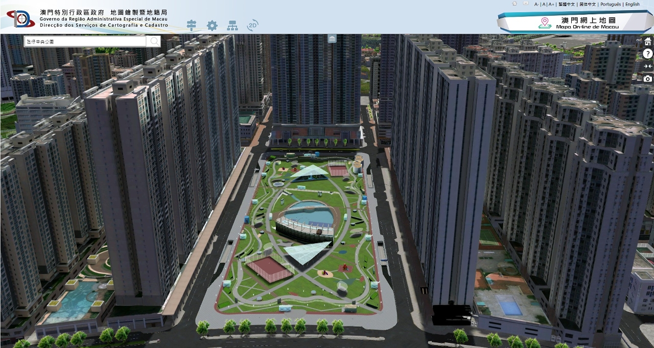 Conforme o quadro geral do “Plano Quinquenal de Desenvolvimento da Região Administrativa Especial de Macau (2016-2020) ”, em articulação com o desenvolvimento da Cidade Inteligente e impulsionar a generalização da aplicação de informações urbanas tridimensionais, a Direcção dos Serviços de Cartografia e Cadastro (DSCC) lançou a função de mapa tridimensional de Macau (mapa 3D de Macau), que foi criada com base na plataforma do “Mapa On-line de Macau”. Esta função permite que o público possa dar um passeio em Macau com paisagens 3D através do meio de visualização e ângulos de vistas diferentes em que permite que os utentes possam conhecer claramente as paisagens da cidade de Macau sem sair de casa.
