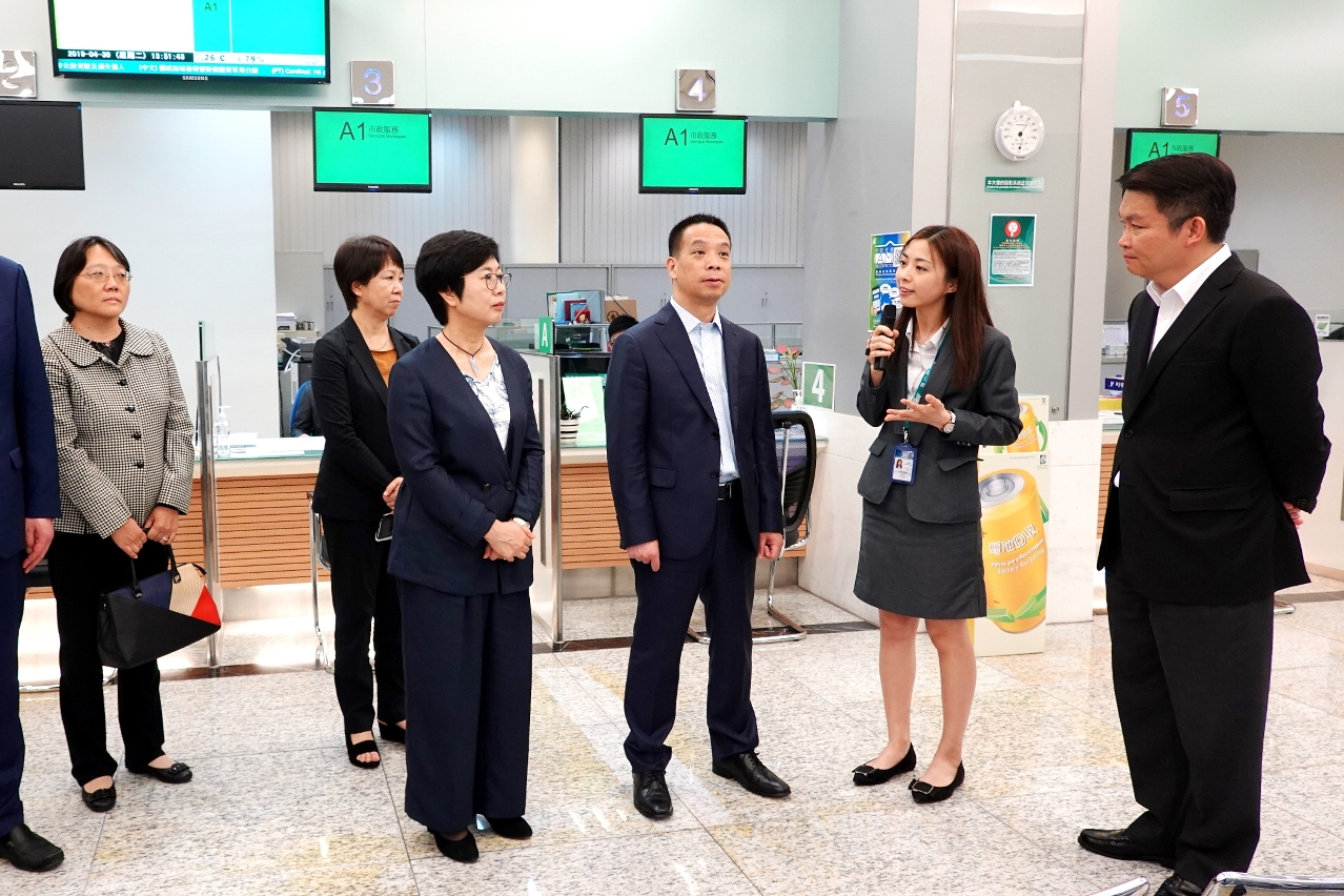 A delegação liderada pelo Vice-Director do Gabinete para os Assuntos de Hong Kong e Macau do Conselho do Estado, Huang Liuquan, acompanhado pela Secretária para a Administração e Justiça, Chan Hoi Fan, visitou hoje (dia 30) o Centro de Serviços da RAEM na Zona Norte, conhecendo o funcionamento e a prestação de serviços do Centro.