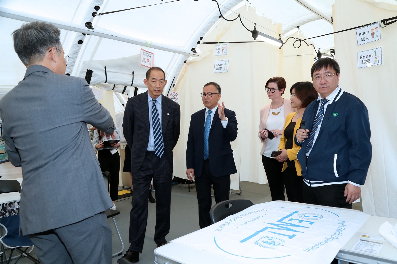 Tekeshi Kasai congratulou a equipa internacional de emergência médica de Macau por ter-se tornado na quinta equipa da China acreditada pela equipa internacional de emergência médica da OMS, e espera que haja mais oportunidades de intercâmbio no futuro, e que continue a implementar programas de intercâmbio de envio mútuo de pessoal para formação. Tekeshi Kasai elogiou a implementação de uma série de saúde inteligente dos Serviços de Saúde, tais como Programa Piloto eHR e o Programa “A minha saúde, depende de mim”, permitindo que os residentes de Macau tenham mais informações sobre a sua saúde tendo ficado impressionado com os serviços médicos de Macau e anseia estabelecer um intercâmbio no âmbito dos serviços de saúde eletrónicos.
