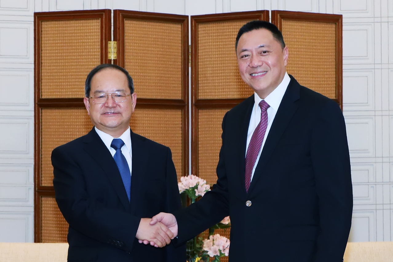 Estiveram também presentes, no encontro, a Chefe do Gabinete do Secretário para a Economia e Finanças, Teng Nga Kan, o membro permanente e secretário-geral do Comité do PCC da Região Autónoma da Etnia Zhuang de Guangxi, Huang Weijing.