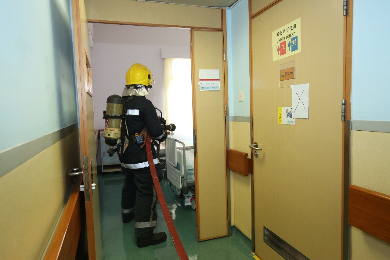 O simulacro teve início com o despoletar de um incêndio na enfermaria n.º 14 do Serviço de Geriatria localizada na Zona A do 4.º andar do Edifício da Clínica Psiquiátrica do CHCSJ devido a um paciente estar a fumar de forma ilegal. Após o alarme de incêndio, um profissional de saúde chamou o Corpo dos Bombeiros. Os bombeiros e as viaturas de bombeiros chegaram ao exterior do Edifício da Clínica Psiquiátrica do CHCSJ em cinco (5) minutos. O Corpo de Polícia de Segurança Pública destacou os agentes para apoiarem o controlo da circulação rodoviária.