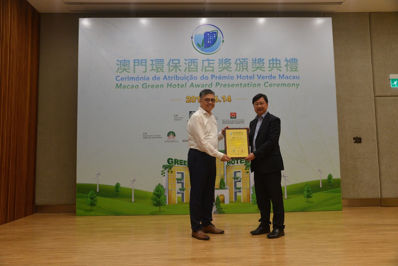 A Cerimónia de Atribuição do Prémio Hotel Verde Macau teve lugar hoje (dia 14) no Auditório da Direcção dos Serviços de Protecção Ambiental (DSPA), sito no rés-do-chão do Edifício CEM. Neste evento foram atribuídos louvores aos 19 hotéis premiados (vide o anexo sobre a lista de prémios). Os hotéis galardoados registaram, também, uma melhoria evidente nas diversas vertentes, nomeadamente: a conservação de energia e a poupança de água, a redução de resíduos e reciclagem, com vista a contribuir em conjunto para um desenvolvimento sustentável de Macau.