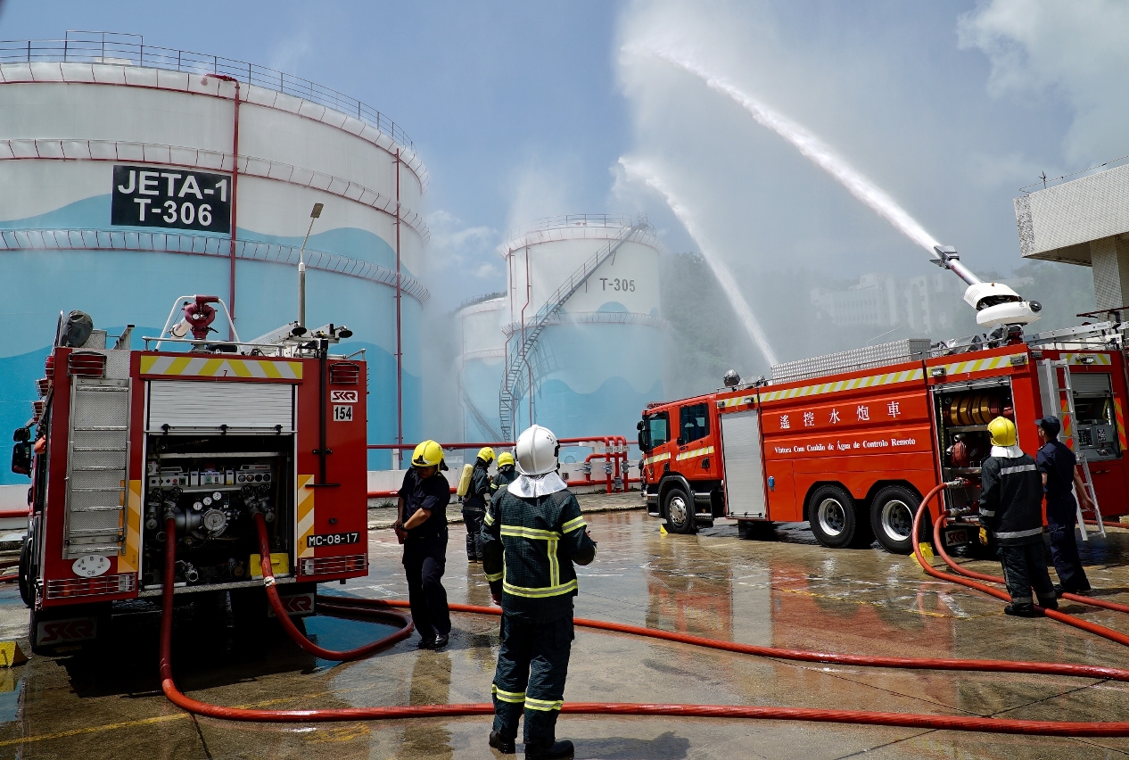 Com o objectivo de intensificar os trabalhos de emergência e a capacidade de coordenação e comunicação do Terminal de Combustíveis do Porto de Ká-Hó em caso de incidentes, o Corpo de Bombeiros (CB) ajudou a Companhia de Administração do Depósito de Combustíveis de Macau a realizar hoje (28 de Junho de 2019), um exercício de incêndio e evacuação no Terminal de Combustíveis do Porto de Ká-Hó, de modo a testar o mecanismo de coordenação entre o CB e o Terminal de Combustíveis do Porto de Ká-Hó, e elevar a eficácia do socorro em caso de incidentes.
