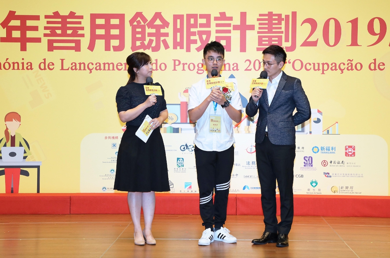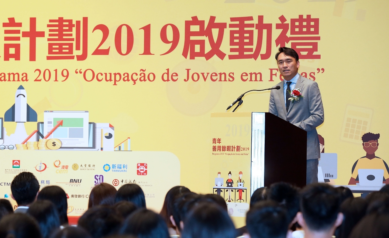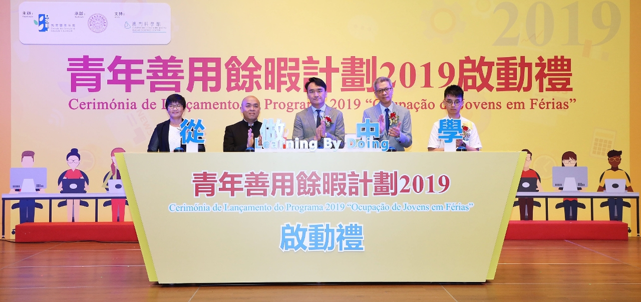 Realizou-se, com sucesso, a cerimónia de lançamento do programa “Ocupação de Jovens em Férias 2019”, no dia 29 de Junho (Sábado), pelas 15h00, no Centro de Convenções do Centro de Ciência de Macau. O programa, organizado pela Direcção dos Serviços de Educação e Juventude (DSEJ), em colaboração com a Associação dos Antigos Alunos de Macau do Programa da Universidade de Tsinghua, conta ainda com apoio do Centro de Ciência de Macau, S.A. e a participação conjunta de serviços públicos e instituições particulares de Macau.