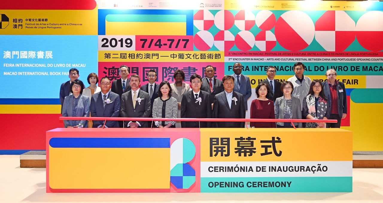 A Feira Internacional do Livro de Macau 2019, um dos eventos no âmbito do 2.º Encontro de Macau - Festival de Artes e Cultura entre a China e os Países de Língua Portuguesa, co-organizada pelo Instituto Cultural do Governo da Região Administrativa Especial de Macau e pela Companhia (Grupo) Nacional de Importação e Exportação de Publicações da China, foi inaugurada no dia 4 de Julho, pelas 10:30 horas, no Pavilhão A do Hotel The Venetian Macau, cuja cerimónia foi presidida pelo Vice-Director do Gabinete de Ligação do Governo Popular Central na RAEM, Xue Xiaofeng; pela Representante do Secretário para os Assuntos Sociais e Cultura do Governo da RAEM e Presidente do Instituto Cultural, Mok Ian Ian; pelo Presidente da Companhia de Publicações da China, Tan Yue; pelo Cônsul-geral de Portugal em Macau, Paulo Cunha Alves; pela Secretária-Geral do Secretariado Permanente do Fórum para a Cooperação Económica e Comercial entre a China e os Países de Língua Portuguesa (Macau), Xu Yingzhen; pelo Presidente do Conselho da Administração da Fundação Macau, Wu Zhiliang; pelo Coordenador-Adjunto do Gabinete de Estudo das Políticas do Comissariado do Ministério dos Negócios Estrangeiros da República Popular da China na RAEM, Jiang Xiaofan; pela Vice-Presidente do Instituto de Formação Turística, Florence Ian e pela Chefe do Departamento de Licenciamento e Inspecção da Direcção dos Serviços de Turismo do Governo da RAEM, Chan Lou.