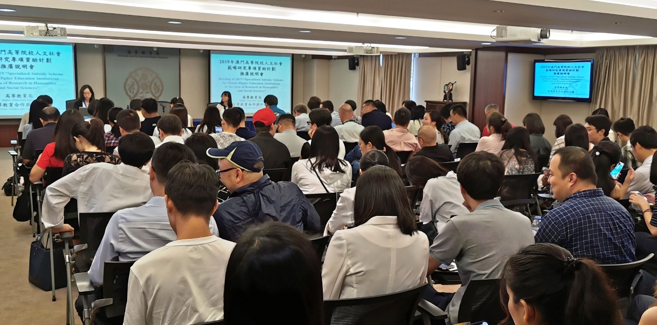 A Direcção dos Serviços do Ensino Superior realizou, recentemente, uma sessão de esclarecimento sobre o “Plano de Financiamentos Especiais para Estudos nas Áreas de Humanidades e Sociedade das Instituições do Ensino Superior de Macau de 2019” que atraiu a participação de cem docentes e investigadores das instituições do ensino superior, e representantes das respectivas unidades de investigação científica. Esta sessão permite que as instituições do ensino superior de Macau planeiem, com mais eficácia, a candidatura do financiamento dos seus projectos, lançados no futuro e ligados às respectivas áreas.