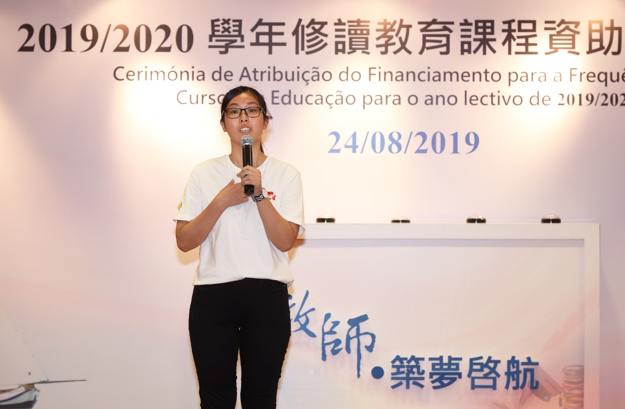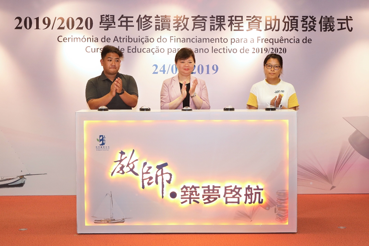 O evento para atribuição do financiamento, para além de ter incluído o elogio aos alunos, também contou com a cerimónia “Início do sonho de ser docente” e um espectáculo realizado pelo docente de Música, no activo, Lio Ka U, antigo bolseiro, que interpretou uma canção composta por si, com o objectivo de incentivar os alunos seleccionados a esforçarem-se para alcançar os objectivos definidos. Esta cerimónia significa que os alunos seleccionados já iniciaram a sua viagem de dedicação à Educação, servindo de incentivo para que estes não se esqueçam do entusiasmo sentido pela Educação e continuem a transmitir o espírito educativo e os conhecimentos adquiridos, dedicando-se à Educação de Macau, usando a sua vida para influenciar outras.