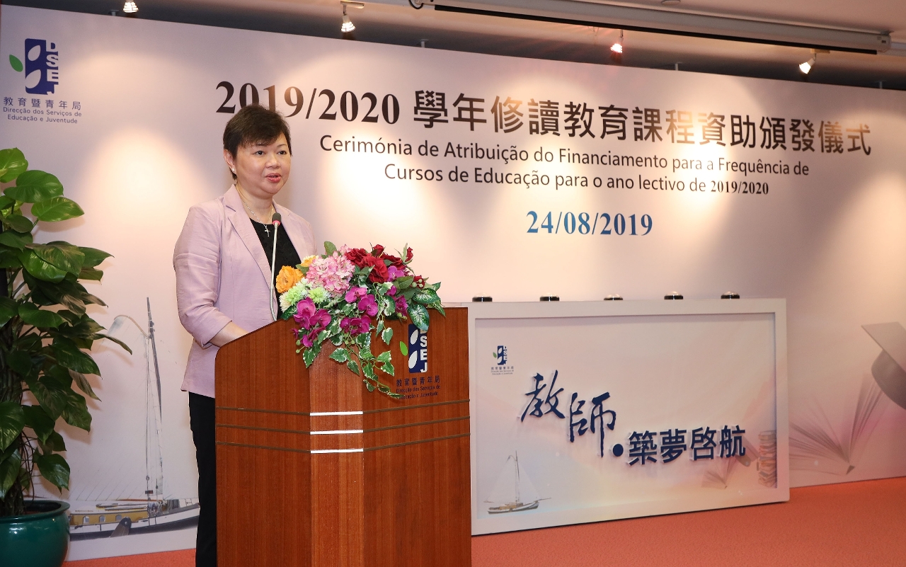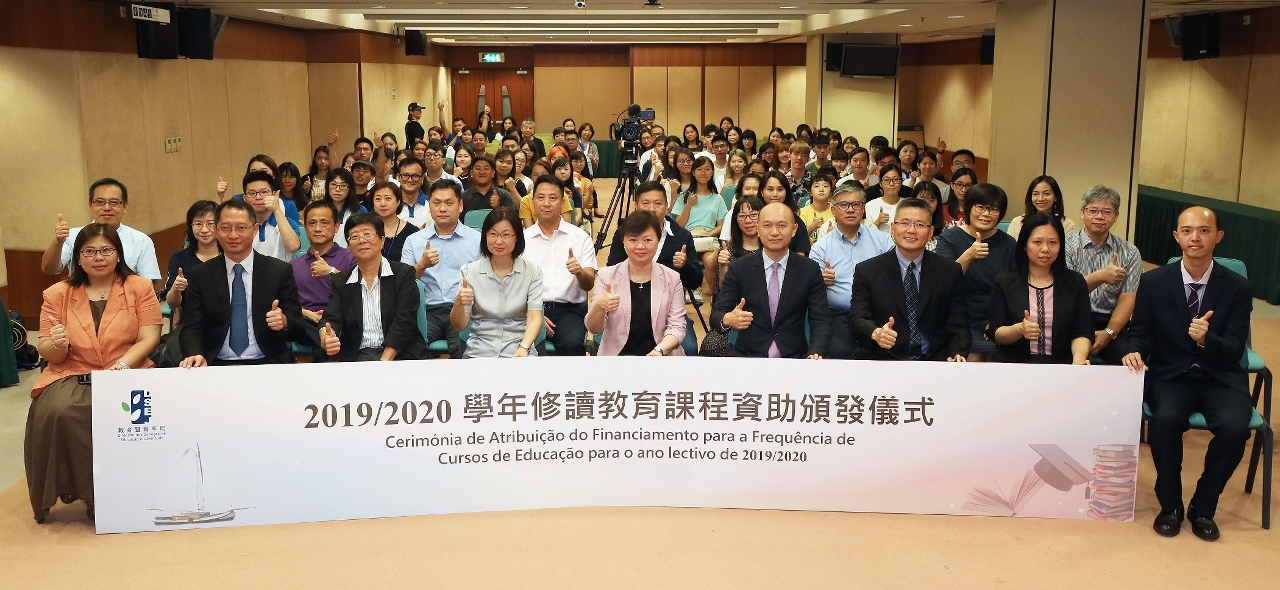 A Direcção dos Serviços de Educação e Juventude (DSEJ) continuará a executar, no ano lectivo de 2019/2020, o “Plano de Financiamento para a Frequência de Cursos de Educação por Alunos Excelentes”. Neste âmbito, realizou, no dia 24 de Agosto, a Cerimónia de Atribuição do Financiamento para a Frequência de Cursos de Educação do Ano Lectivo de 2019/2020, que contou com a presença da directora substituta da DSEJ, Leong Vai Kei, entre outros chefes de subunidades, directores e responsáveis das escolas secundárias dos alunos finalistas seleccionados e dos encarregados de educação dos mesmos, num total de cerca de 150 convidados, para partilharem, em conjunto, a alegria dos alunos seleccionados.