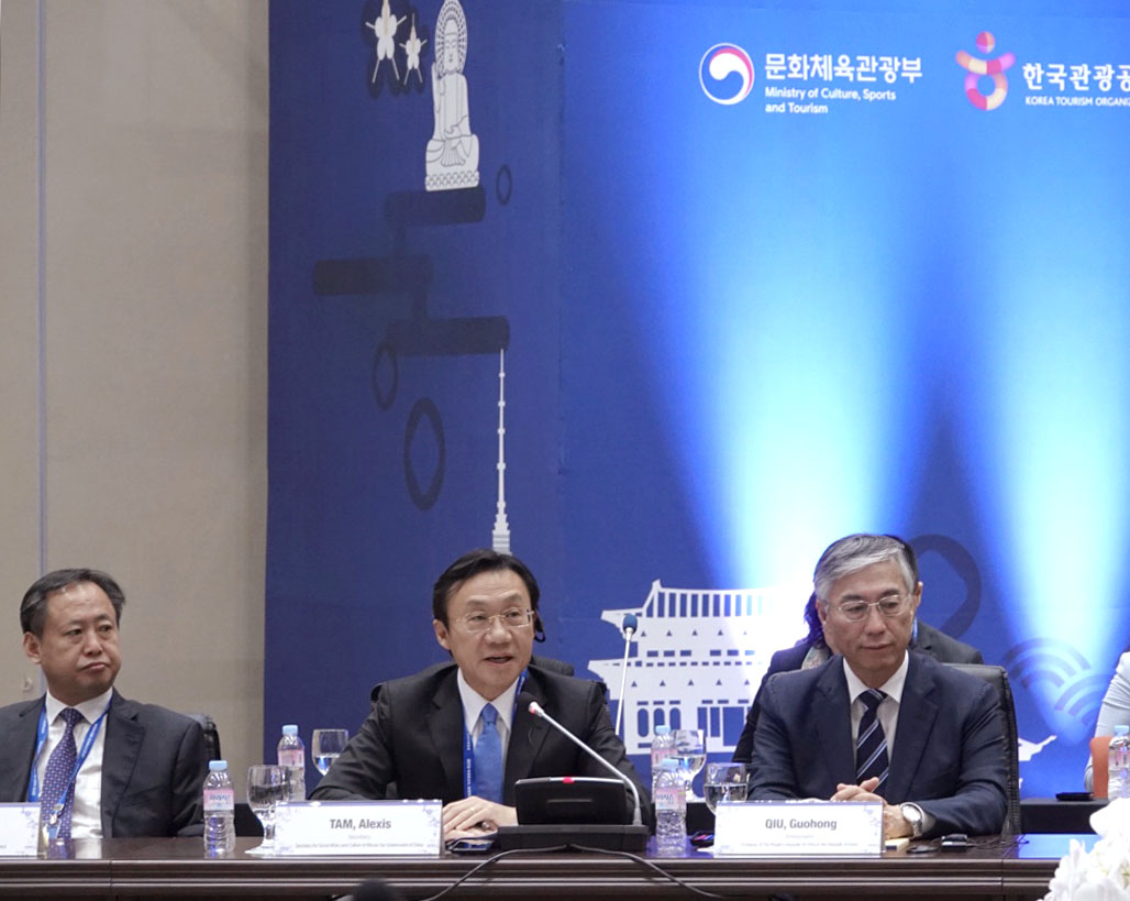 Por sua vez, Alexis Tam afirmou, na sua intervenção, que graças ao grande apoio do Governo Central, Macau tem aproveitado as suas especificidades da coexistência das culturas ocidental e oriental, tendo mantido, a longo prazo, um diálogo aberto e intercâmbio com todo o mundo, assim como uma cooperação estreita com os países vizinhos, como a Coreia do Sul e Japão. Durante vários anos consecutivos, os sul-coreanos e japoneses ocupam o 1.º e o 2.º lugar dos turistas estrangeiros que visitam Macau. Tanto a harmonia e a diversidade da sociedade como a hospitalidade da população de Macau têm sido bem acolhidas pelos sul-coreanos e japoneses. Por outro lado, o Japão e a Coreia do Sul são também destinos turísticos favoritos dos residentes de Macau, o que resulta no aumento constante das ligações aéreas entre Macau, Coreia do Sul e Japão.